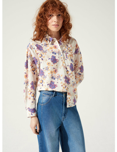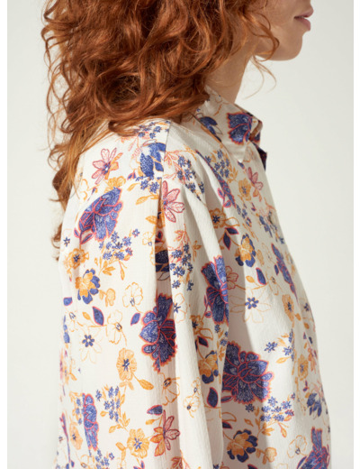 • Caractéristiques clés : Chemise droite avec poignets boutonnés et poche plaquée et boutonnée à la poitrine. Imprimé exclusif « Gita » sur un Dobby de coton texturé, lui conférant élégance, légèreté et durabilité. Idéal avec un blue jean pour un style casual, bohème et romantique.
