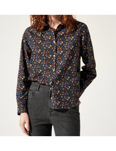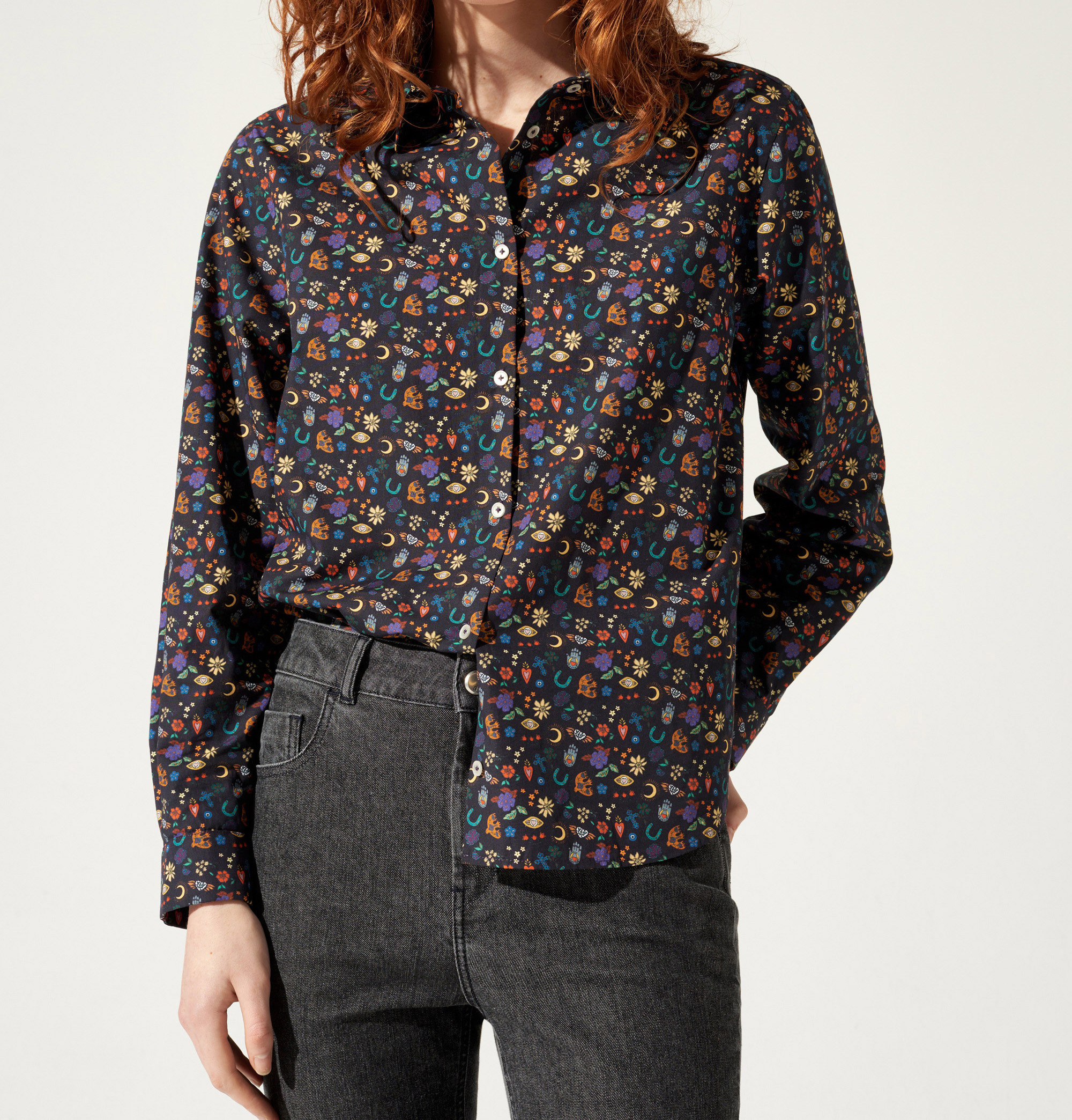 • Caractéristiques clés : Chemise droite avec poignets boutonnés. Imprimé exclusif « Bonaventure » sur une popeline de coton structurée. Un imprimé "gri-gri" qui porte chance.