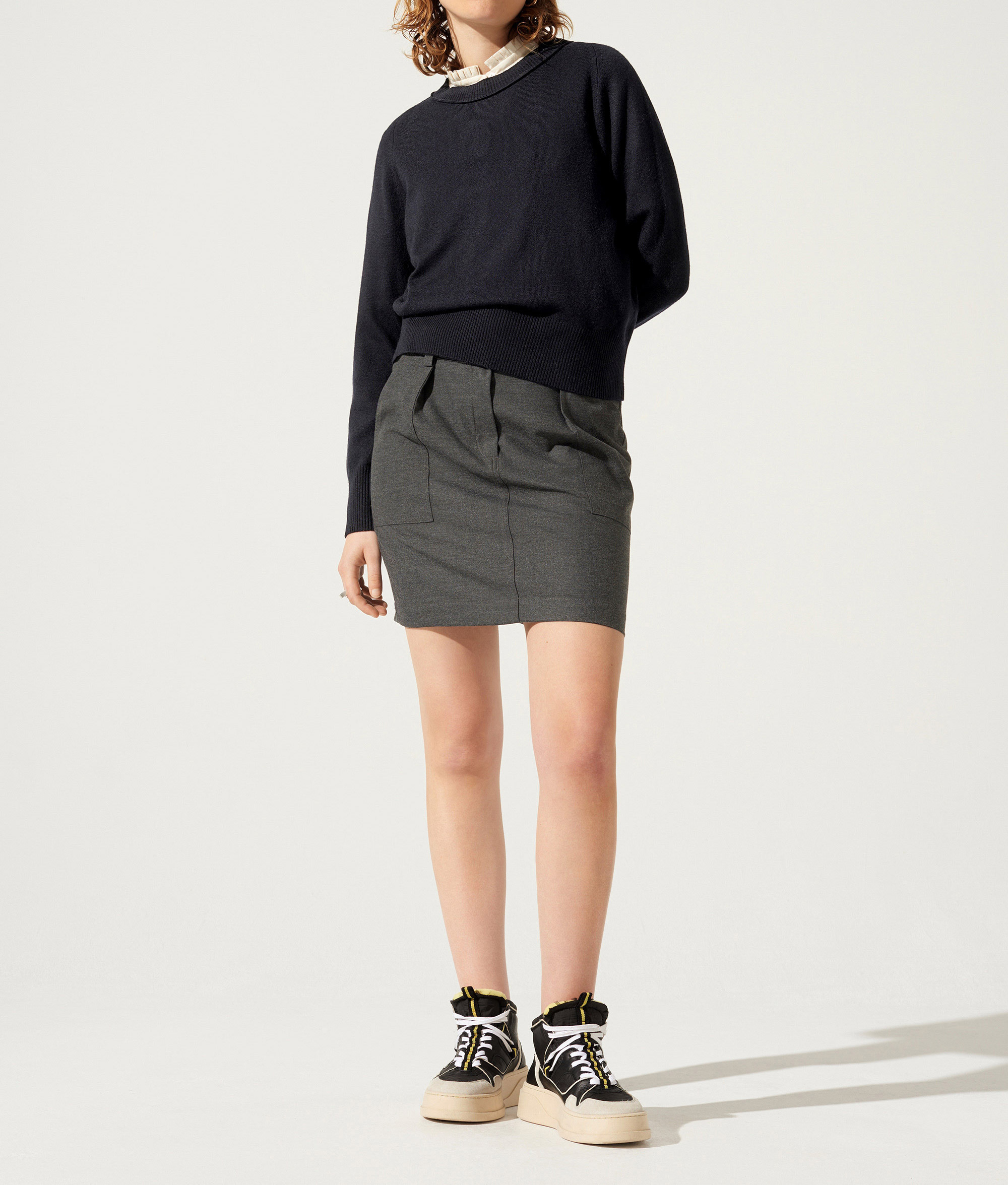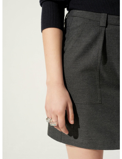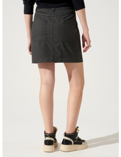 • Caractéristiques clés : Jupe droite taille haute et longueur mi-cuisses : une pièce idéale pour un style workwear ou à détourner dans une tenue plus casual. L'ouverture boutonnée et zippée sur le devant permet un enfilage rapide et les grandes poches plaquées à l'avant et à l'arrière rendent ce basique unique.