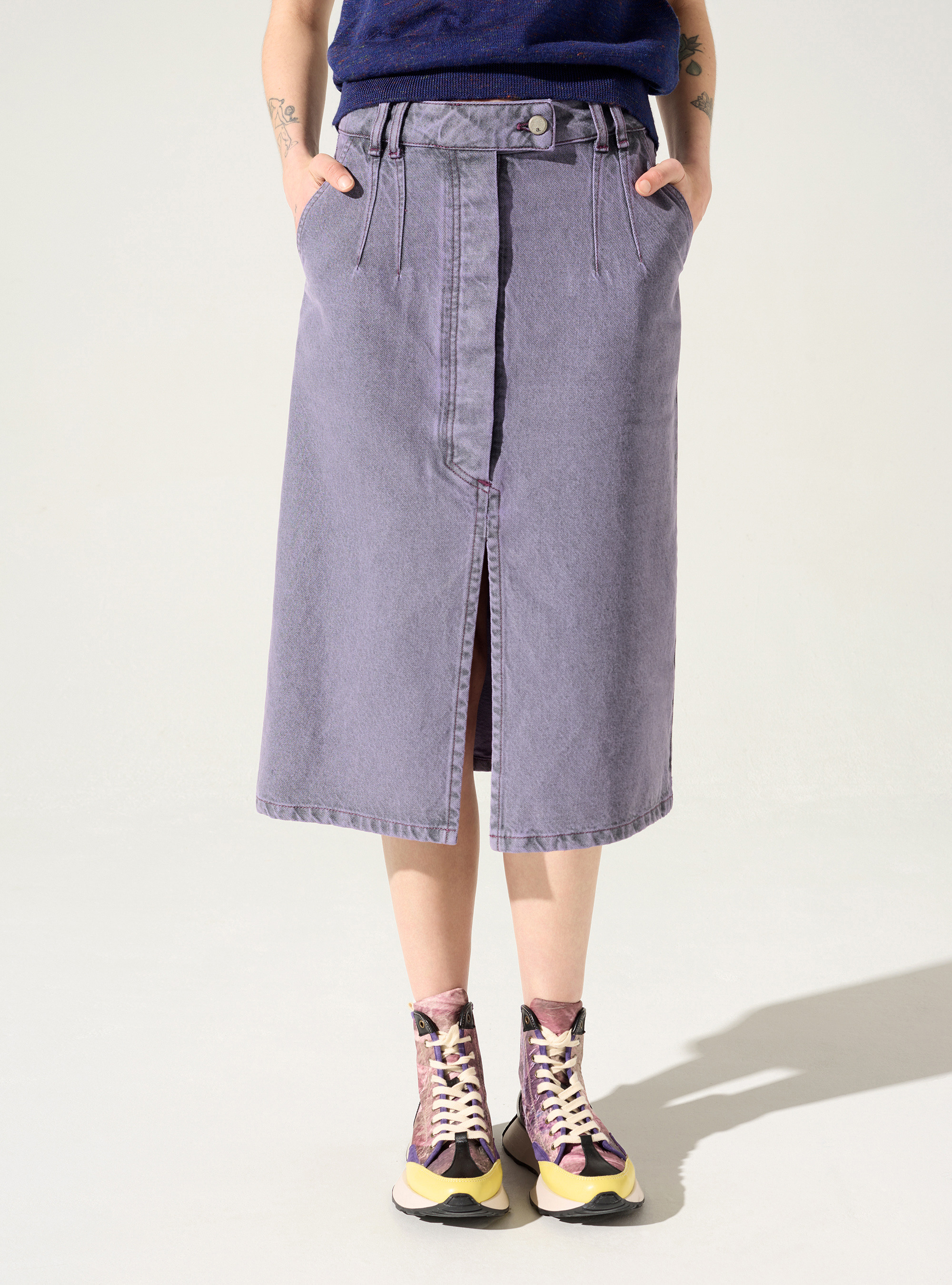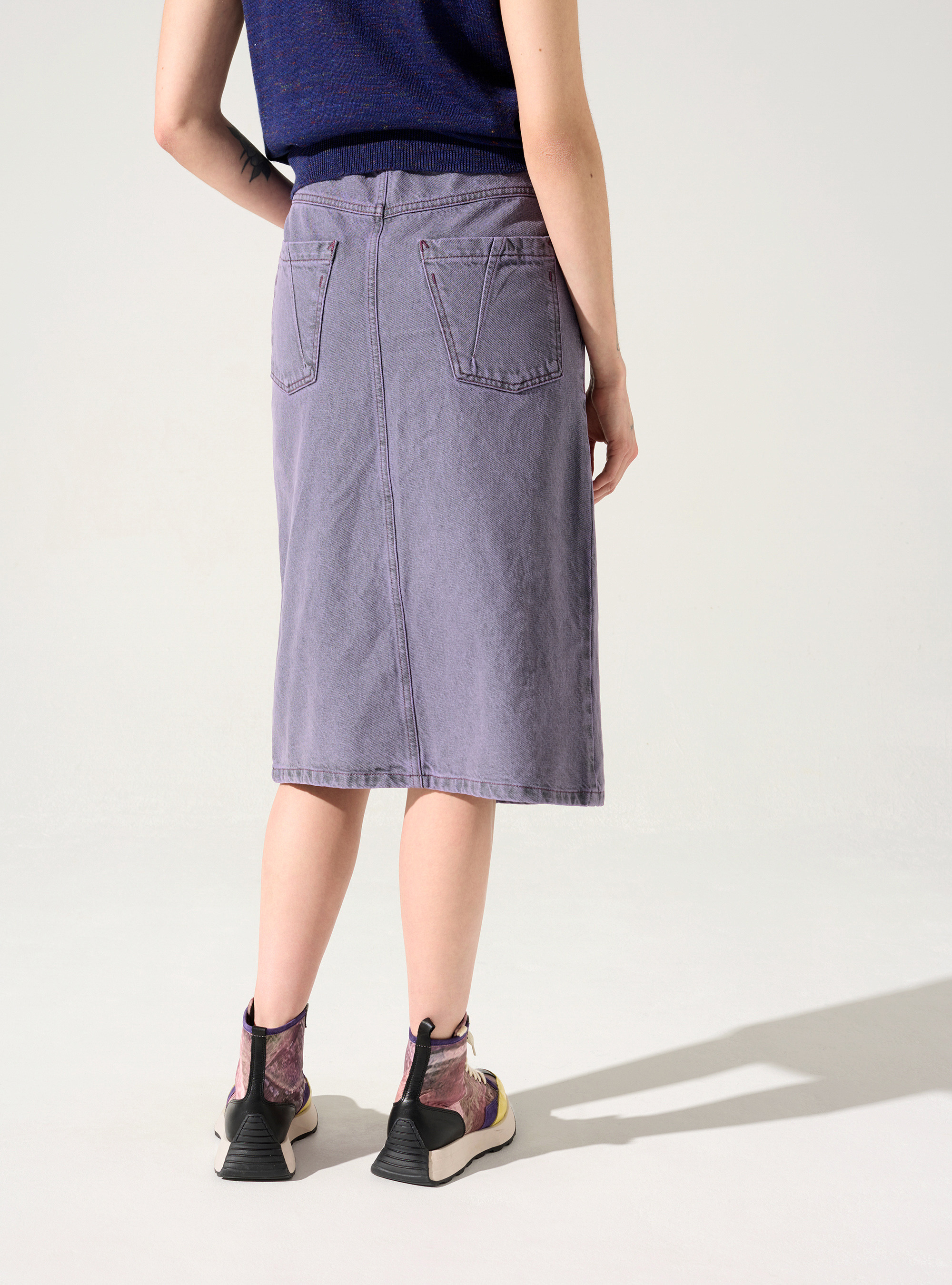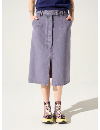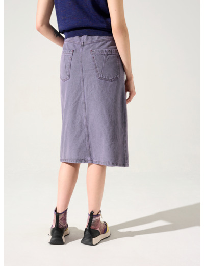 • Caractéristiques clés : Jupe crayon en toile denim 100% coton, longueur midi. Grande ouverture boutonnée et zippée pour un confort d'utilisation. Traitement spécifique qui lui confère ce coloris et cet aspect marbré.