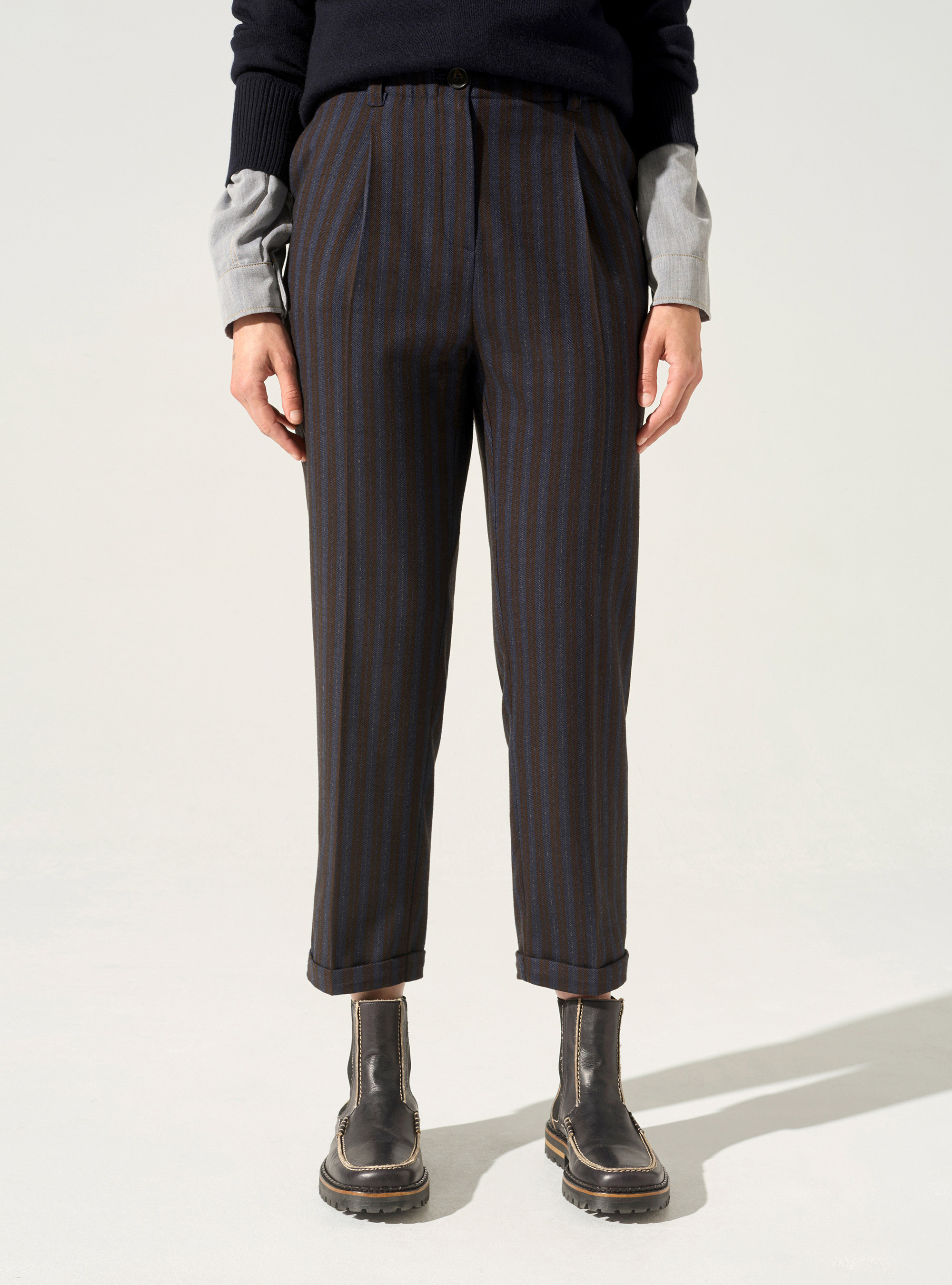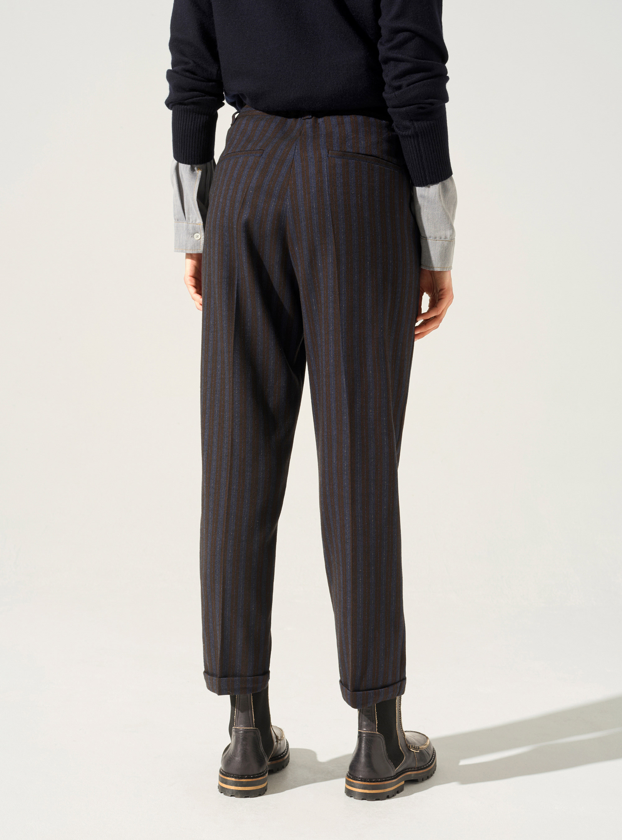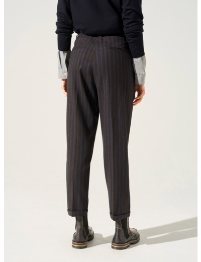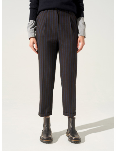 • Caractéristiques clés : Pantalon droit aux revers piqués en bas de jambes, avec poches italiennes devant et passepoilées au dos. Sa taille haute et élastiquée dans le dos permet un confort optimal, agrémenté par sa longueur 7/8ème.