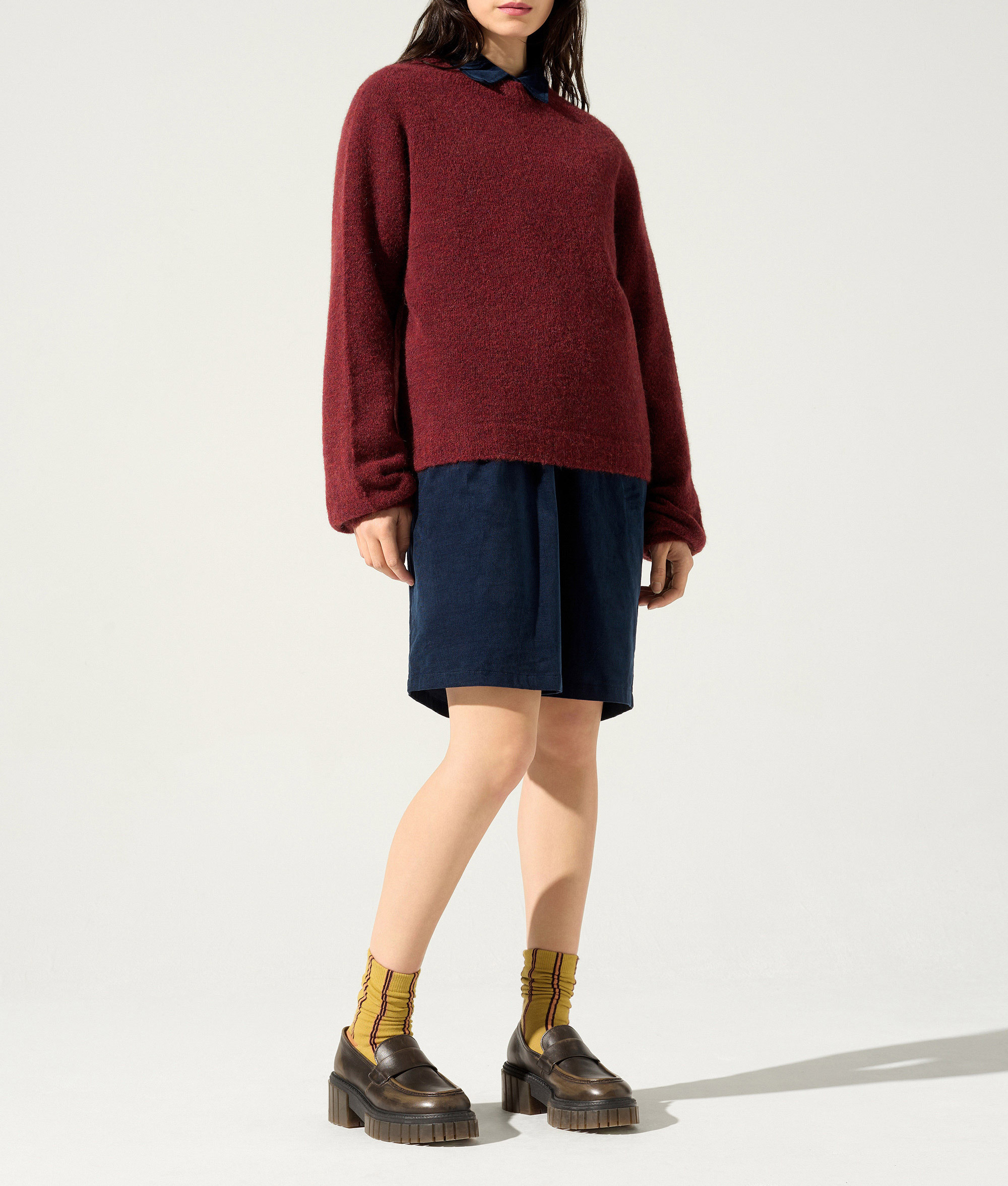 • Caractéristiques clés : Pull à col rond et coupe droite, à manches longues légèrement élargies puis resserrées aux poignets. Pièce fabriquée dans une maille chaude et réconfortante, au toucher fluffy moelleux et mousseux légèrement chiné. Il deviendra vite un must-have de votre hiver !