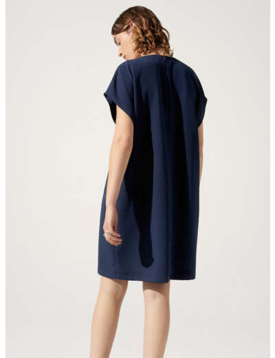 • Caractéristiques clés : Robe ample à manches courtes et longueur mi-cuisses : idéale pour les journées chaudes. Vous aimerez ses détails pratiques : le zip dans le dos, les poches dans la couture côté ou le large pli sur le devant pour une meilleure fluidité de mouvement.