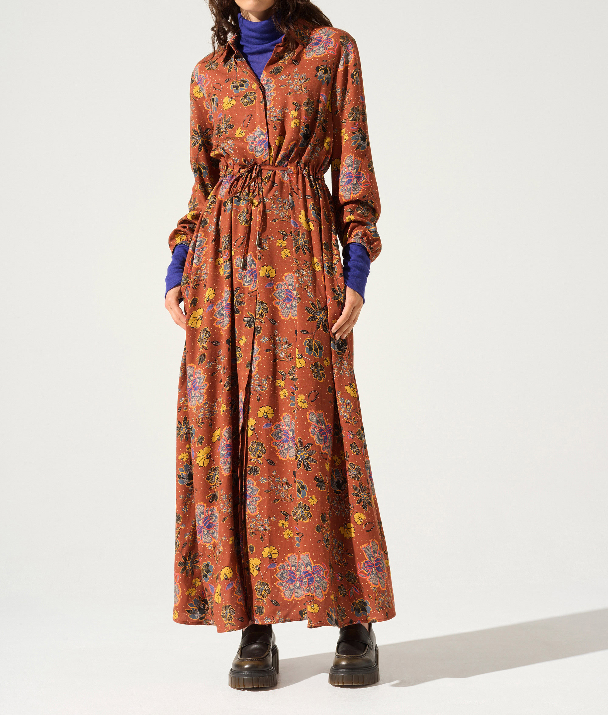 • Caractéristiques clés : Robe droite col chemise et longueur maxi. Ses manches longues se terminent par des bracelets boutonnés. Vous aimerez ses détails pratiques et ingénieux : l'ouverture boutonnage sous une patte cachée ainsi que le lien de serrage à la taille pour un ajustement parfait.