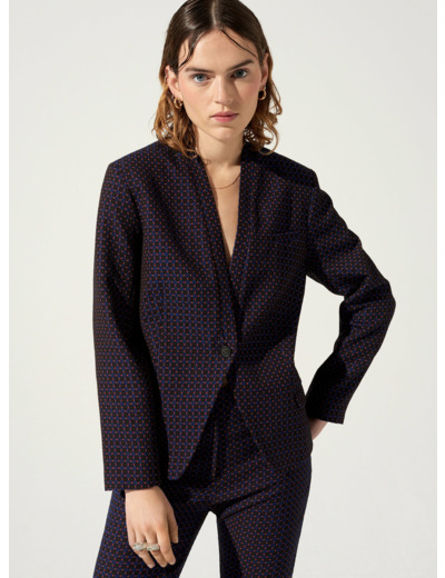 • Composition : TISSU PRINCIPAL:75% POLYESTER 25% VISCOSE DOUBLURE:70% VISCOSE 30% POLYESTER DOUBLURE MANCHES:55% POLYESTER 45% VISCOSE