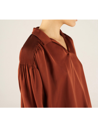 - Bas de manches resserrés façon bord-côtes en plissé cristal