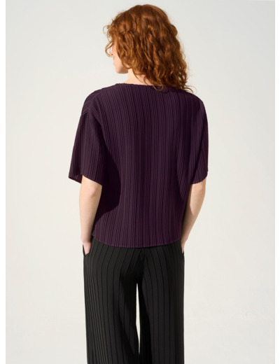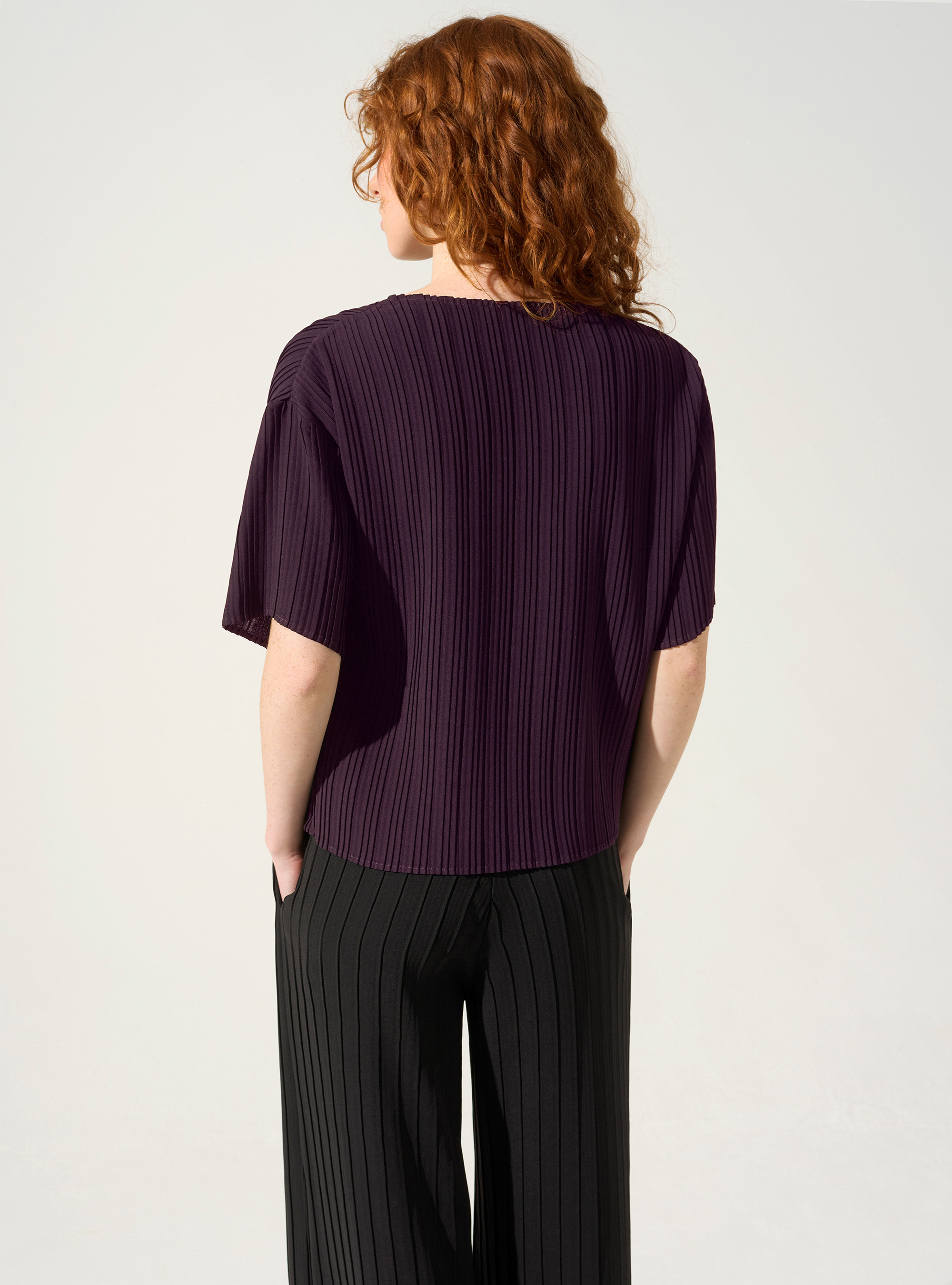 • Caractéristiques clés : Blouse large au volume carré et à manches courtes. Plis plats irréguliers réalisés pièce par pièce dans notre atelier d'Ambérieu en Bugey.