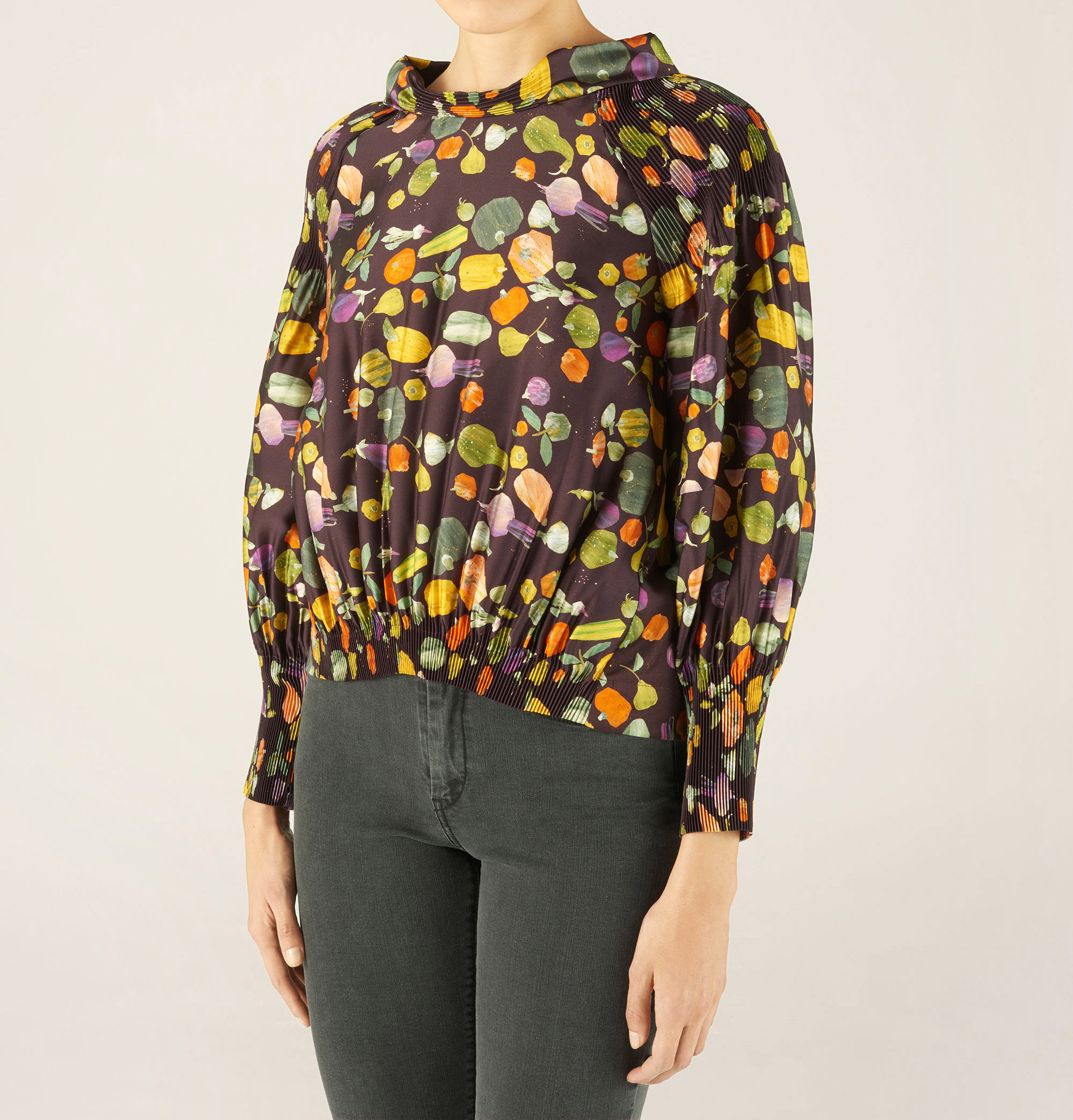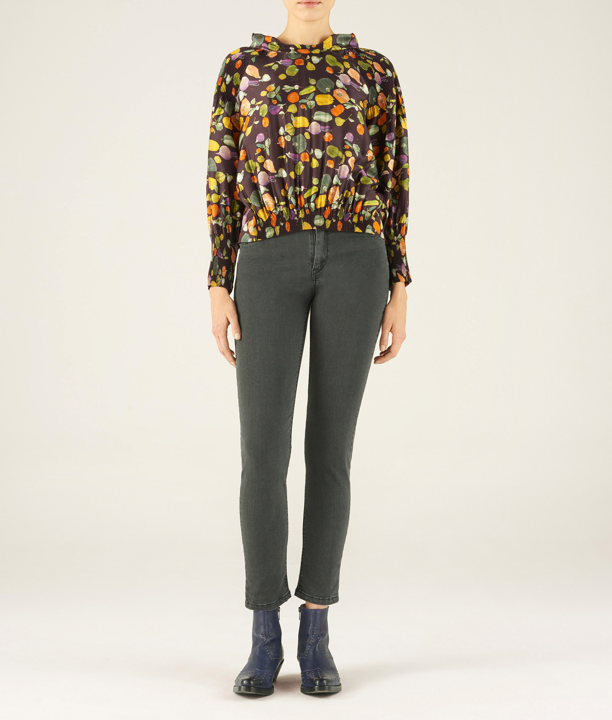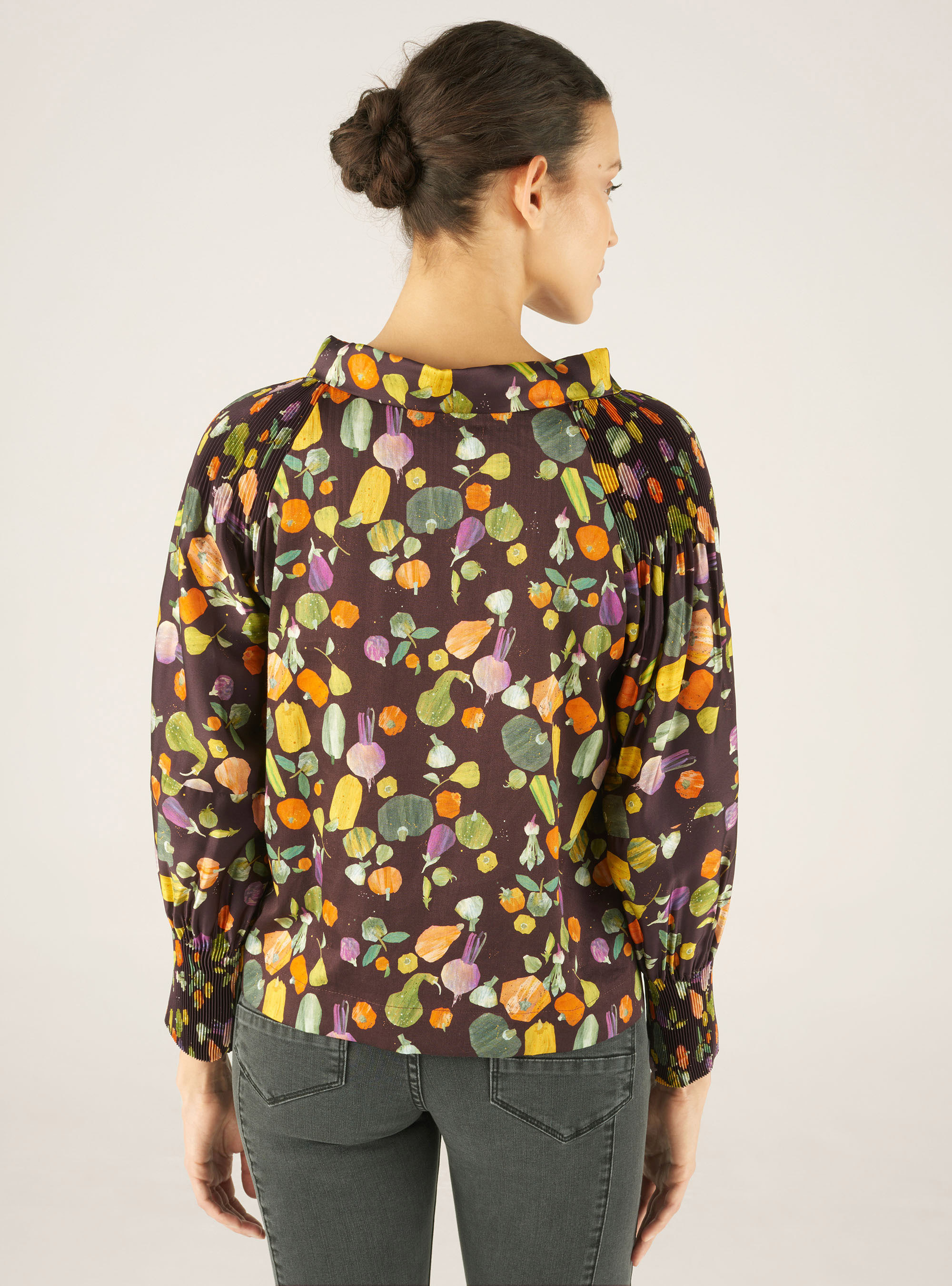 - Mix matières : devant et manches polyester pour le plissage