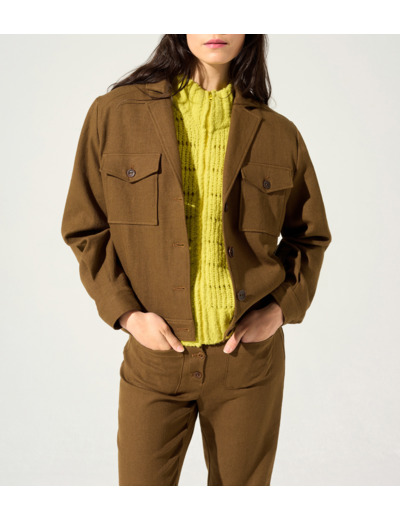 • Caractéristiques clés : Blouson original et ajusté avec son col de veste et sa ceinture droite en bas de buste. Vous aimerez ses détails boutonnés : au niveau des poignets, sur l'ouverture à l'aide de boutons corozo contrastés et sur le rabat des poches plaquées à la poitrine. Blouson doublé avec l'imprimé maison de la saison.