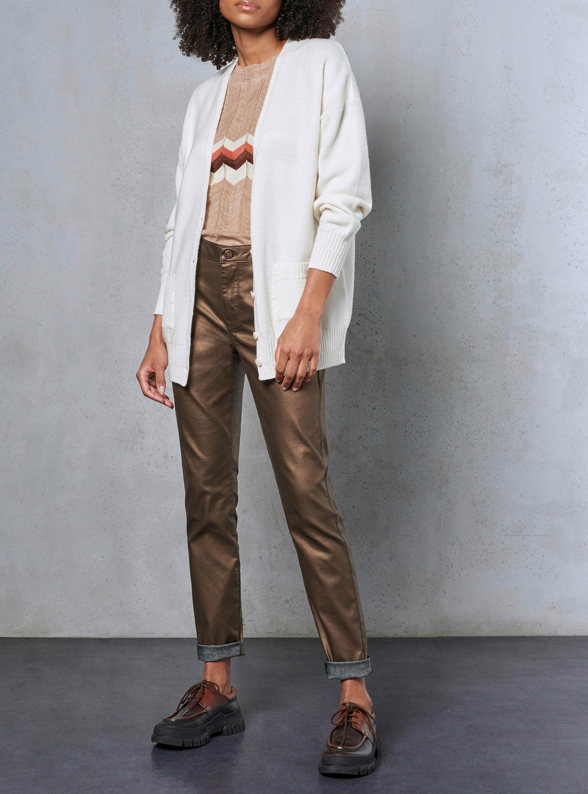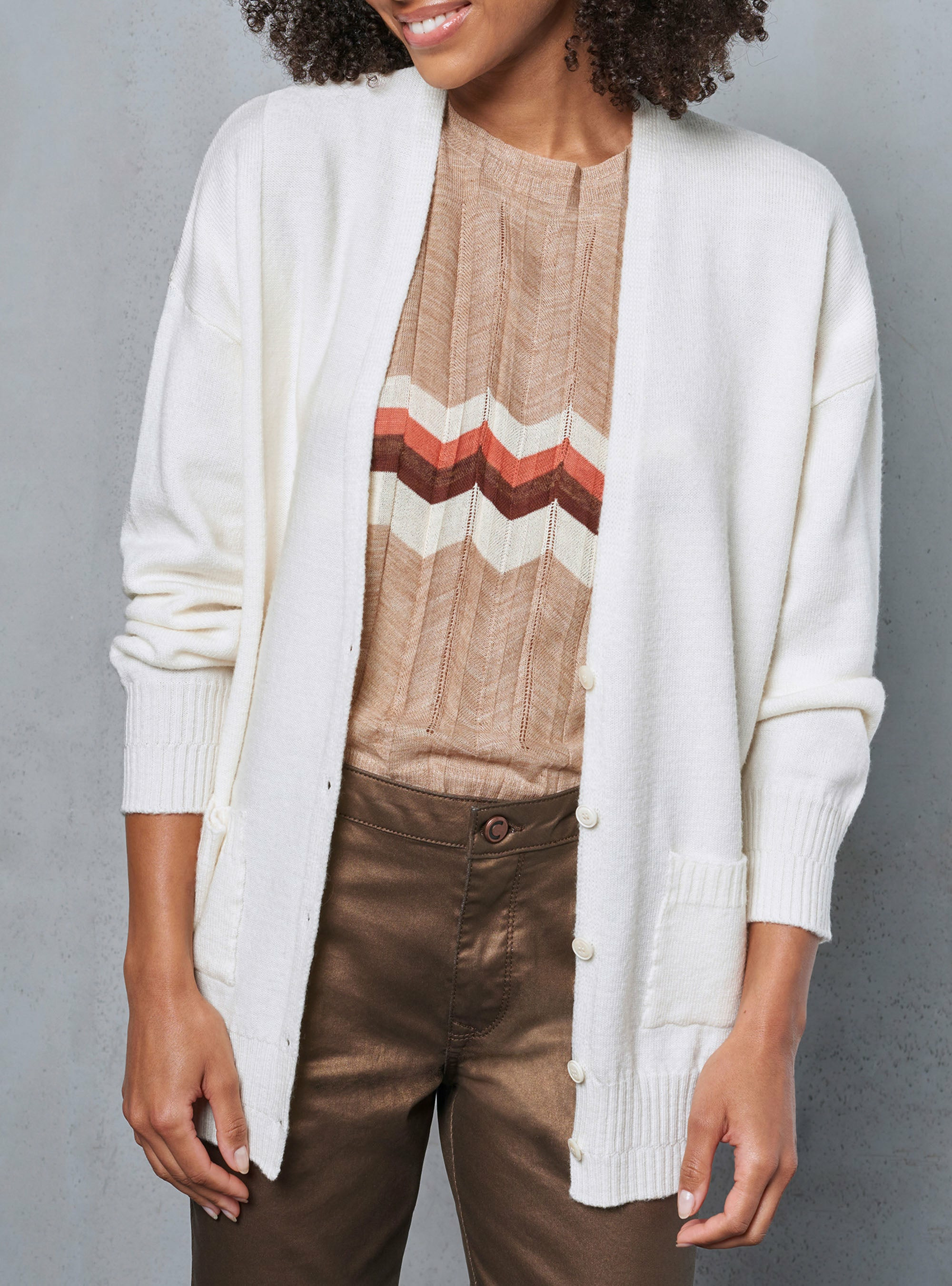 - Finitions par un bord-côte : bas de manches et bas du cardigan