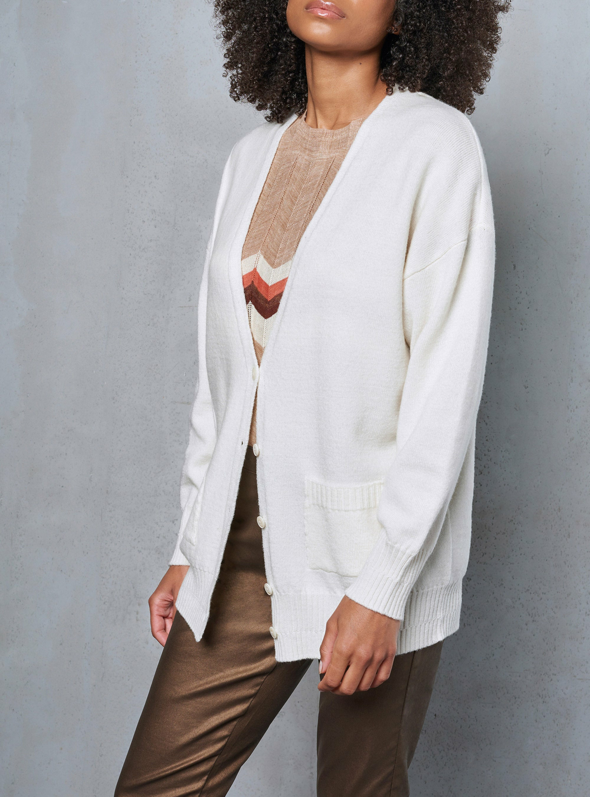 - Long cardigan d'environ 70cm avec encolure profonde en V d'environ 36cm