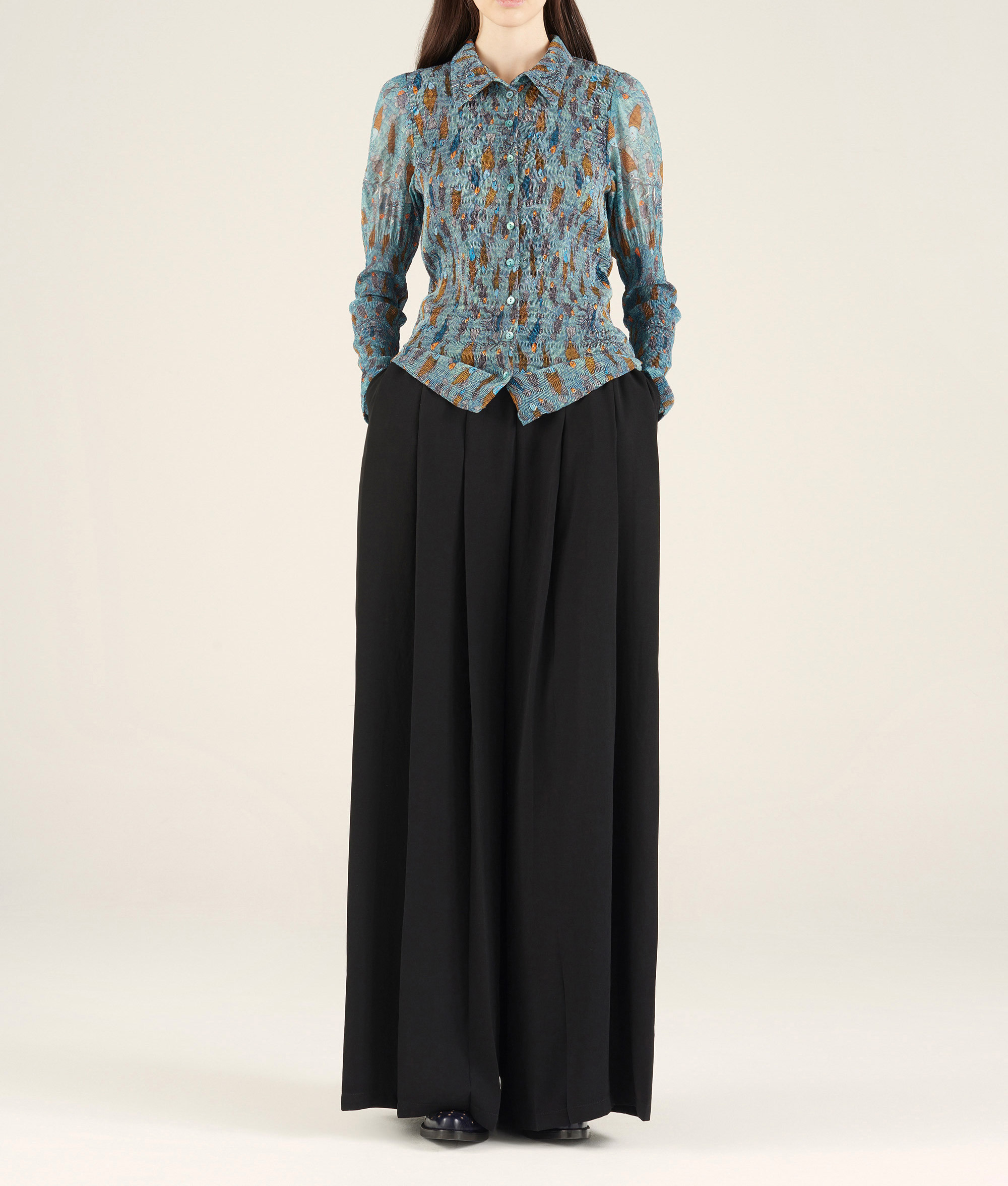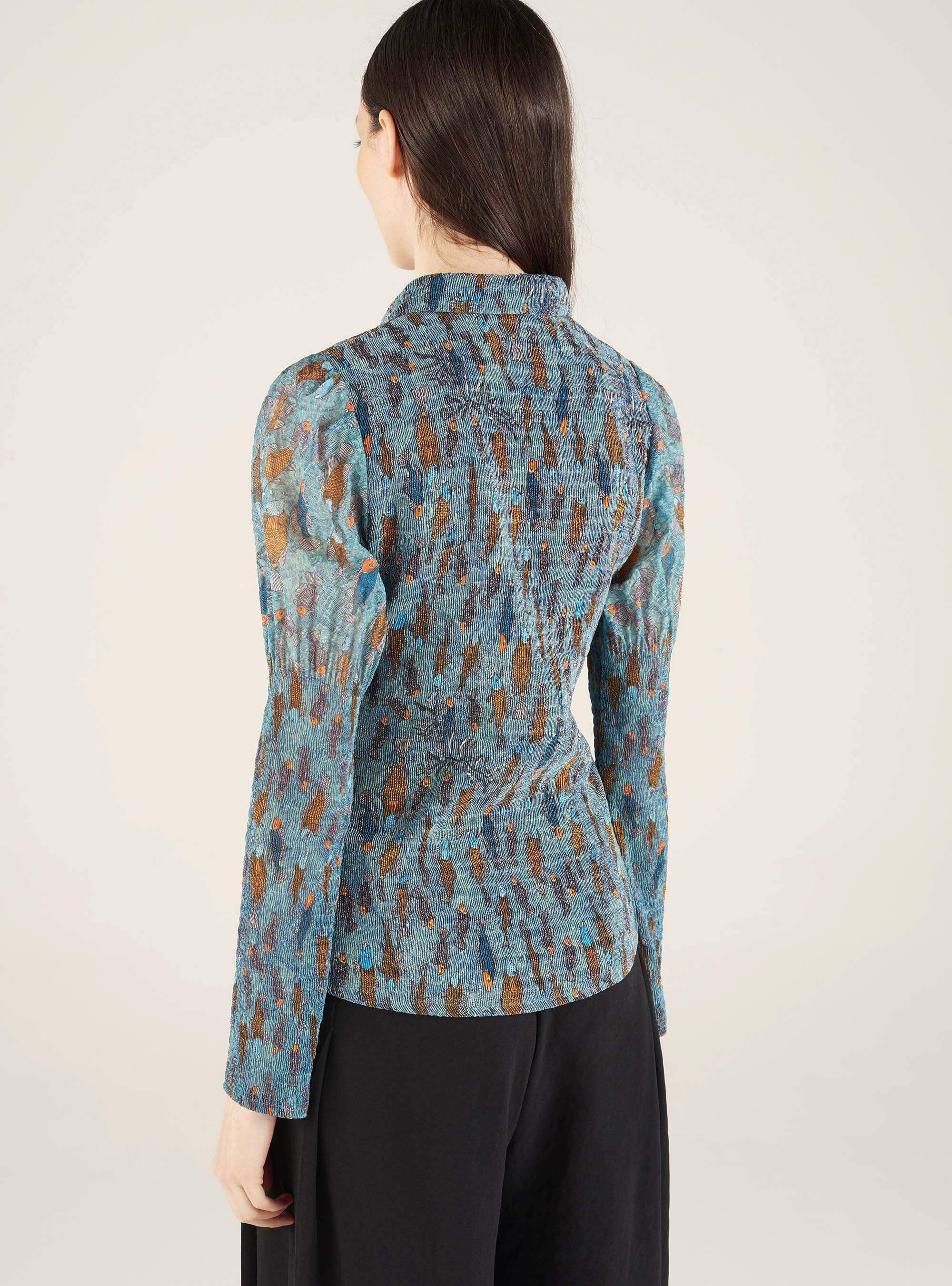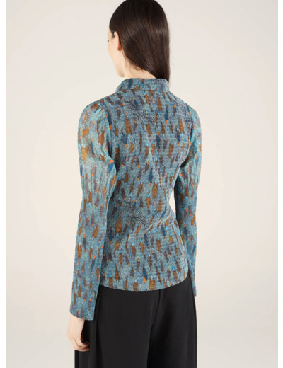 • Caractéristiques clés : - Chemise manches longues en bouillonné laché (effet manches gigot)