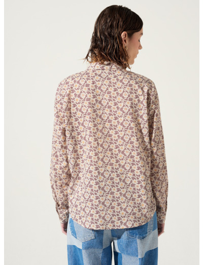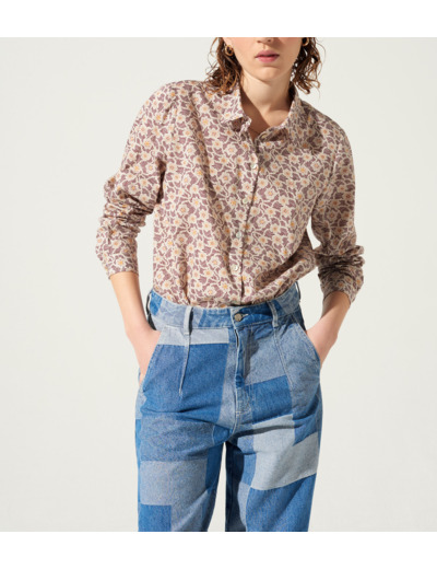 • Caractéristiques clés : Chemise droite dont le col ainsi que les poignets sont doublés en rayures. Boutonnage en nacre naturelle.