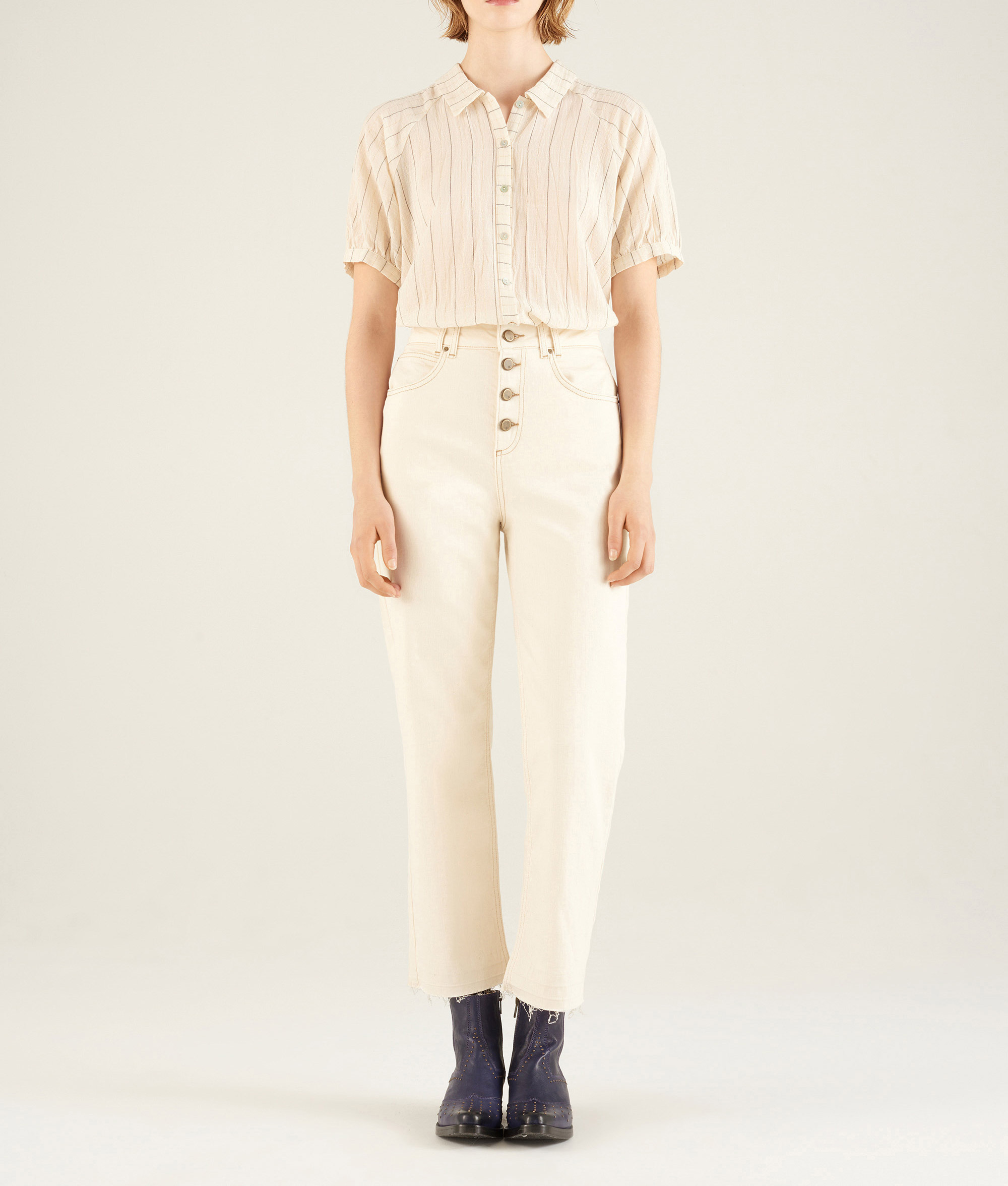 - Col chemise prolongé par une patte de boutonnage milieu devant en sens travers