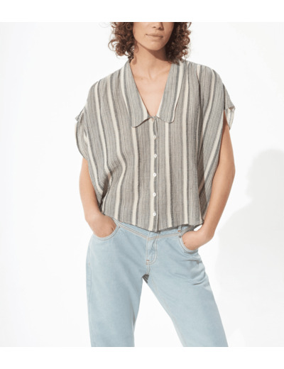 - Col chemise légèrement arrondi avec encolure plongeante sur le devant
