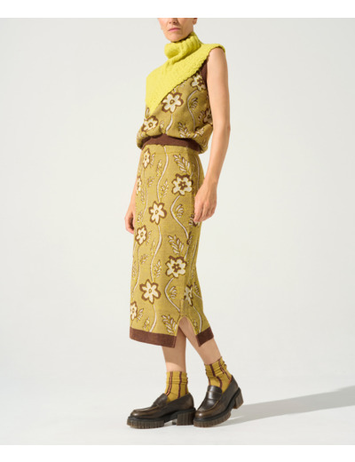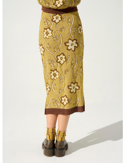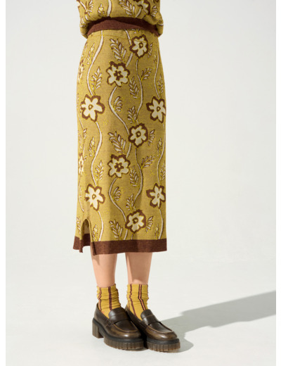 • Caractéristiques clés : Jupe tube longueur près du corps, longueur sous genoux. Sa fente sur les côtés et son élastique à la taille en font une pièce facile à enfiler et à porter. Finitions bords côtes à la taille contrastés par rapport au jacquard, dessin Maison réalisé par notre Bureau de style avec un mélange de jeu de points.