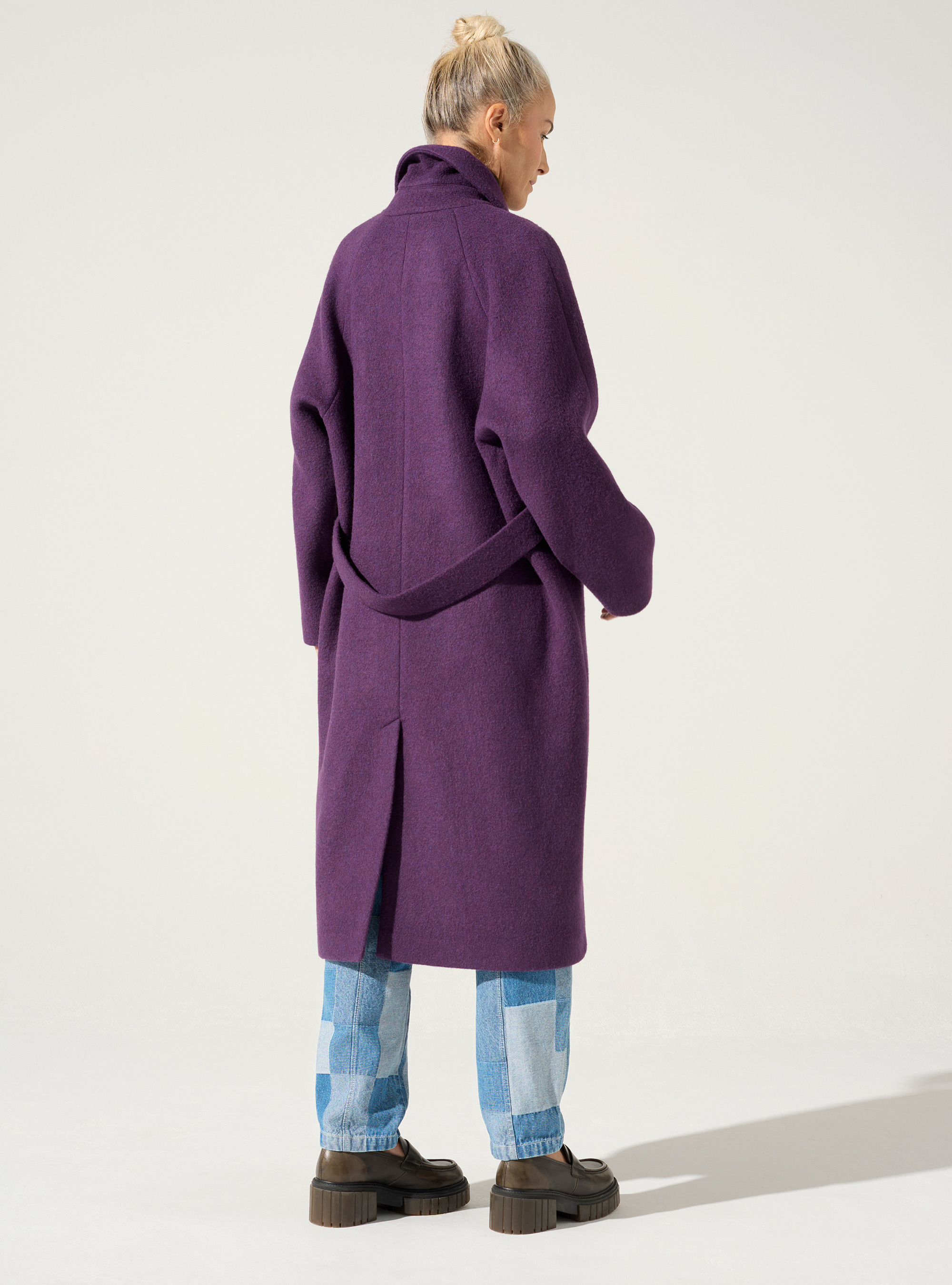 • Caractéristiques clés : Manteau droit avec épaules extra larges et emmanchures raglan descendues. Son col à revers crantés légèrement arrondis et sa fente en bas du dos offrent des détails raffinés à cette pièce en lainage compact à l'aspect gratté et doublé avec notre imprimé de la saison.