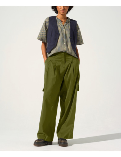 • Caractéristiques clés : Pantalon large avec plis couchés piqués sous la ceinture. Ses nombreuses poches (italiennes sur les hanches, à rabats sur les côtés ou passepoilées boutonnées dans le dos) confèrent à la pièce un look streetwear. Pantalon conçu dans un mélange de coton pour le confort et de polyester pour ses propriétés techniques, très facile d'entretien. Finitions intérieures dans la doublure avec notre imprimé de la saison.