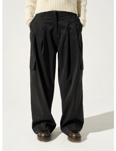 • Caractéristiques clés : Pantalon large avec plis couchés piqués sous la ceinture. Ses nombreuses poches (italiennes sur les hanches, à rabats sur les côtés ou passepoilées boutonnées dans le dos) confèrent à la pièce un look streetwear. Pantalon conçu dans un mélange de coton pour le confort et de polyester pour ses propriétés techniques, très facile d'entretien. Finitions intérieures dans la doublure avec notre imprimé de la saison.