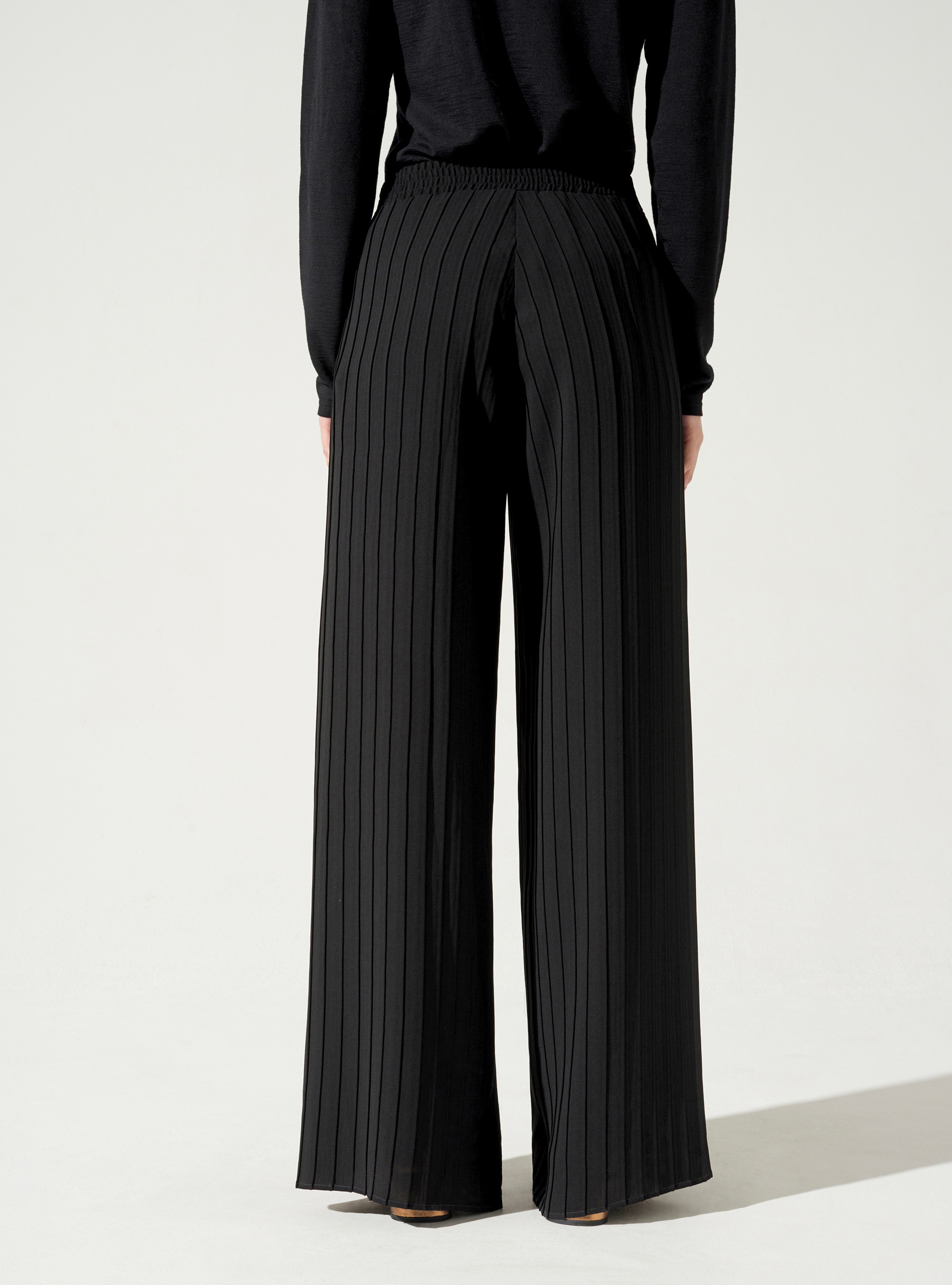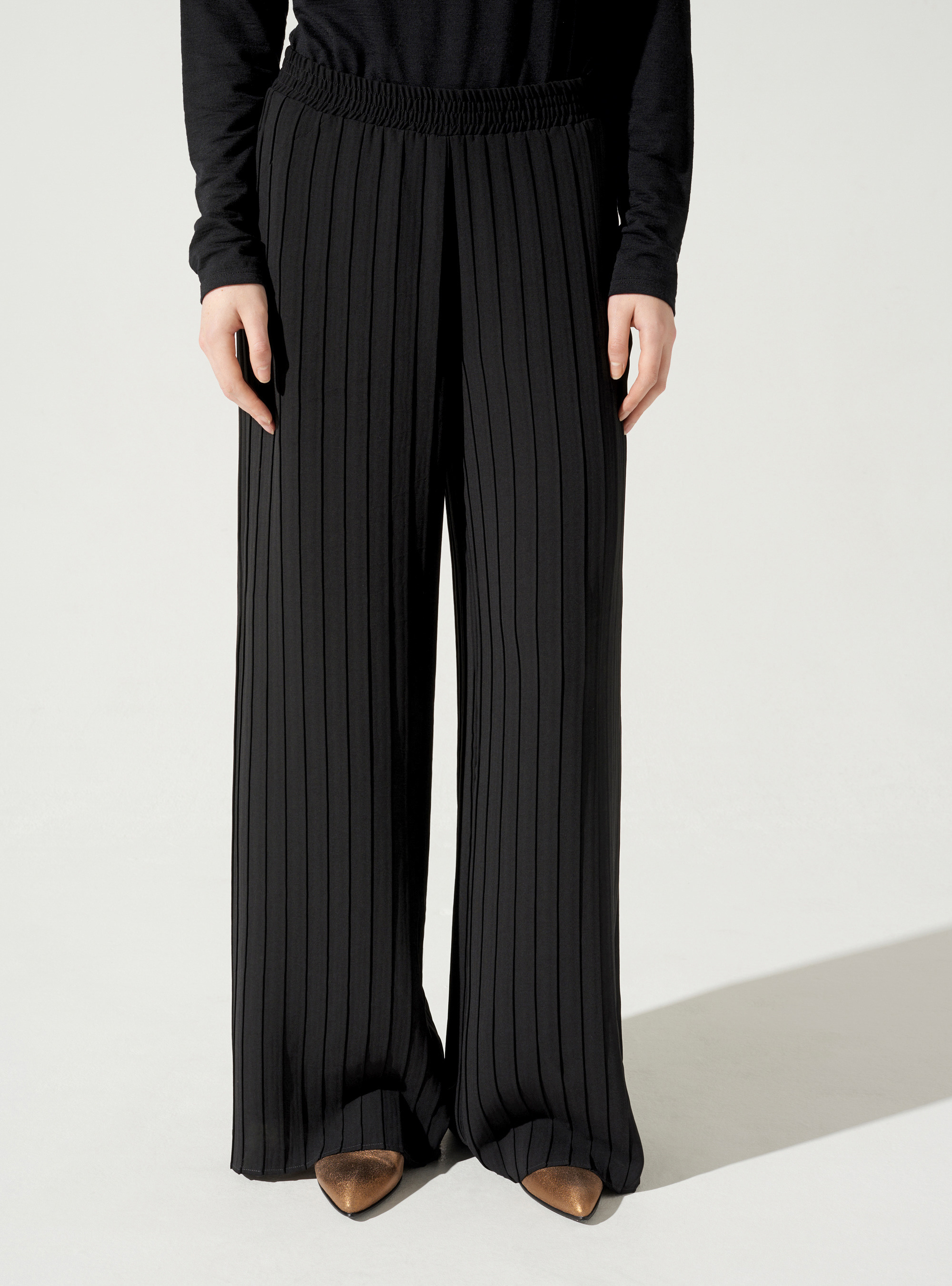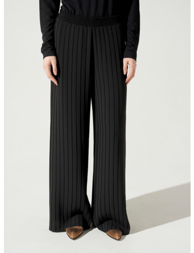 • Caractéristiques clés : Pantalon large élastiqué à la taille façon smocks. Plis plats effectués pièce par pièce dans notre atelier d'Ambérieu en Bugey.