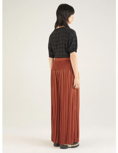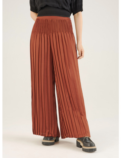 - Larges plis plats sur l'ensemble du pantalon et plissé cristal dans le haut pour un effet "ventre plat"