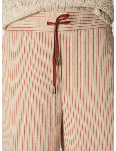 Ce pantalon est fabriqué dans un tissu principal composé de 44% lin, 38% polyester, 16% viscose et 2% élasthanne, assurant légèreté et tenue. Le tissu secondaire est 100% polyester, avec une doublure en viscose pour un toucher doux. Entretien facile : lavage à 30°, pas de blanchiment, séchage interdit en sèche-linge, repassage à fer doux, nettoyage à sec possible.