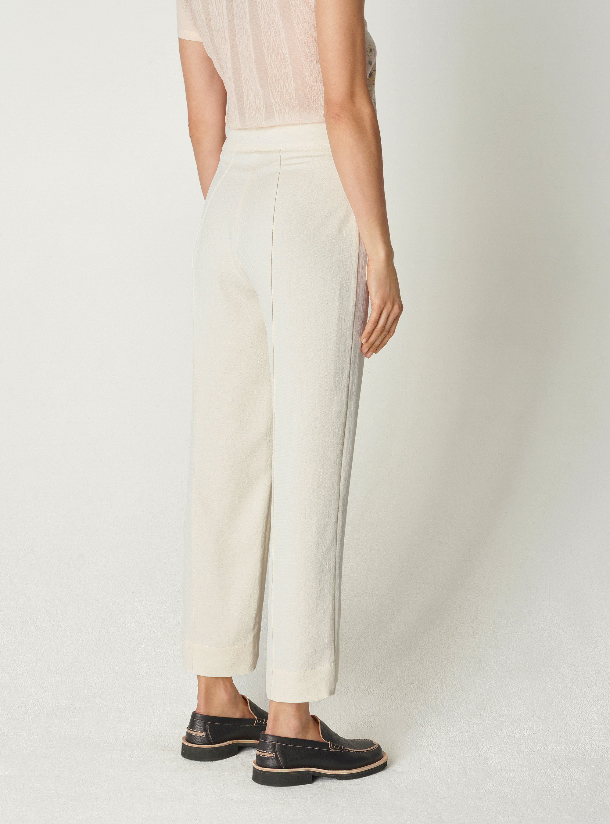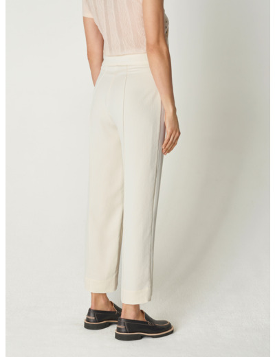 Ce pantalon valorise votre allure tout en garantissant une liberté de mouvement grâce à sa coupe fluide. Sa taille haute affine la silhouette et le pli nervure structure la jambe pour un effet allongeant. Les poches pratiques permettent de garder l’essentiel à portée de main sans alourdir la ligne.