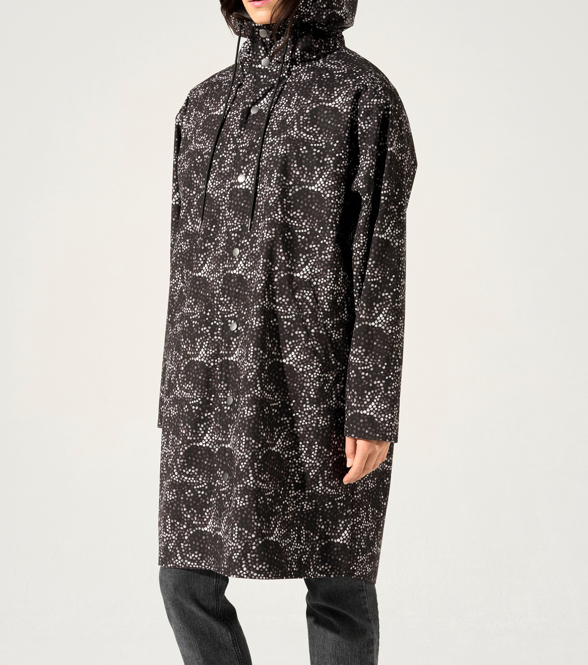 • Caractéristiques clés : Parka à l'encolure montante fermée par des pressions. Sa capuche à petite visière se resserre grâce à un lien. Tissu technique au traitement déperlant, imprimé avec un de nos motifs de la saison et doublée entièrement d'une membrane technique respirante.