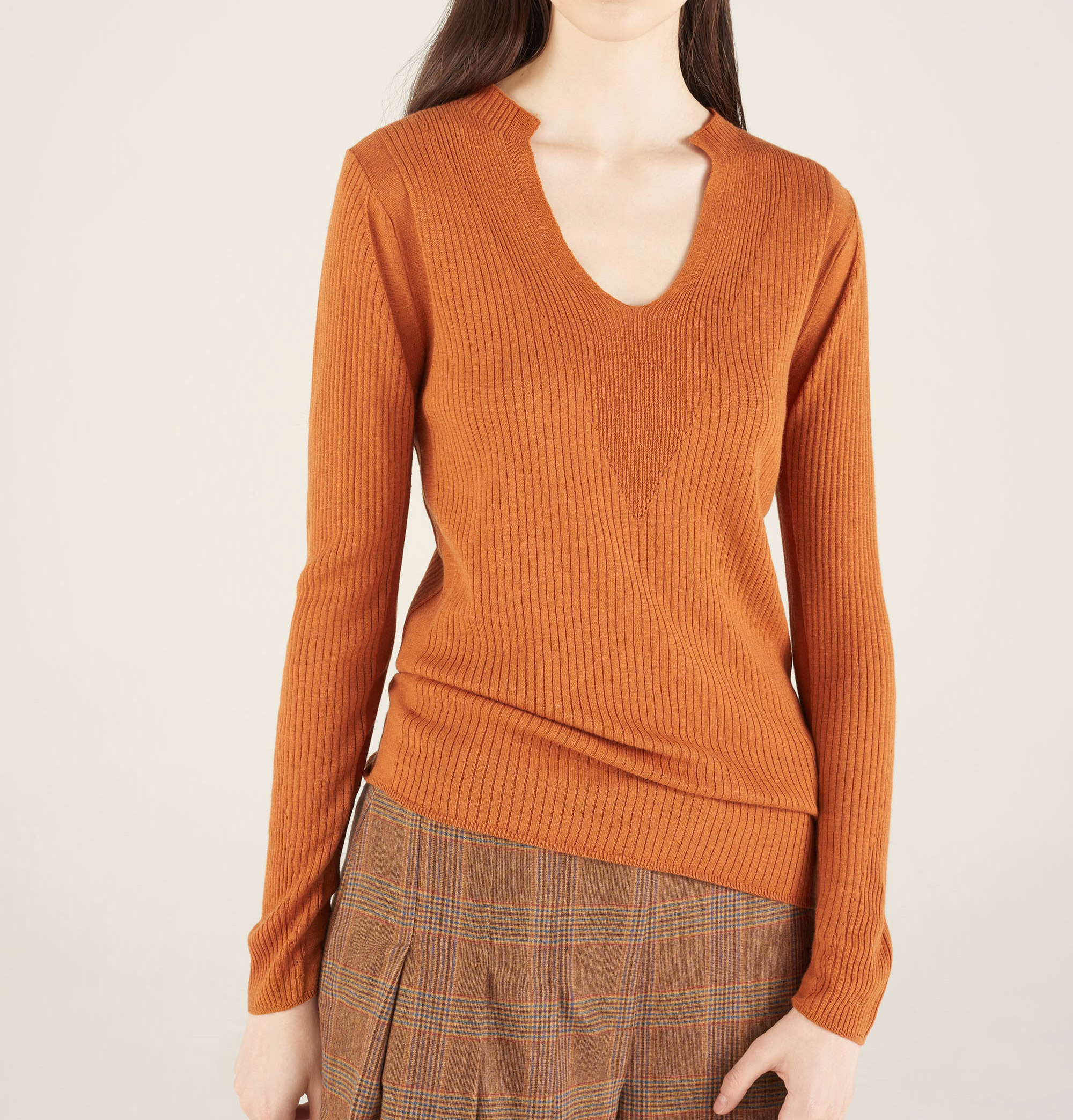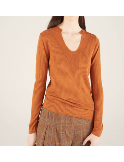 • Caractéristiques clés : - Pull col montant, ouverture V, ajusté