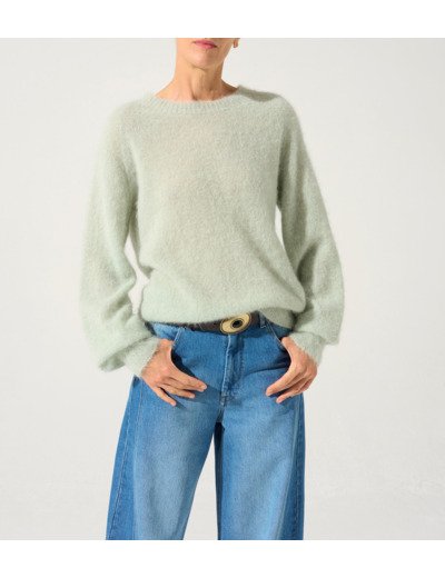 • Caractéristiques clés : Pull aux longues manches bouffantes et resserrées au niveau des poignets à l'aide de bord côte, tout comme au niveau de la taille. Encolure ronde légèrement montante, volume près du corps et sans coutures pour un confort optimal.