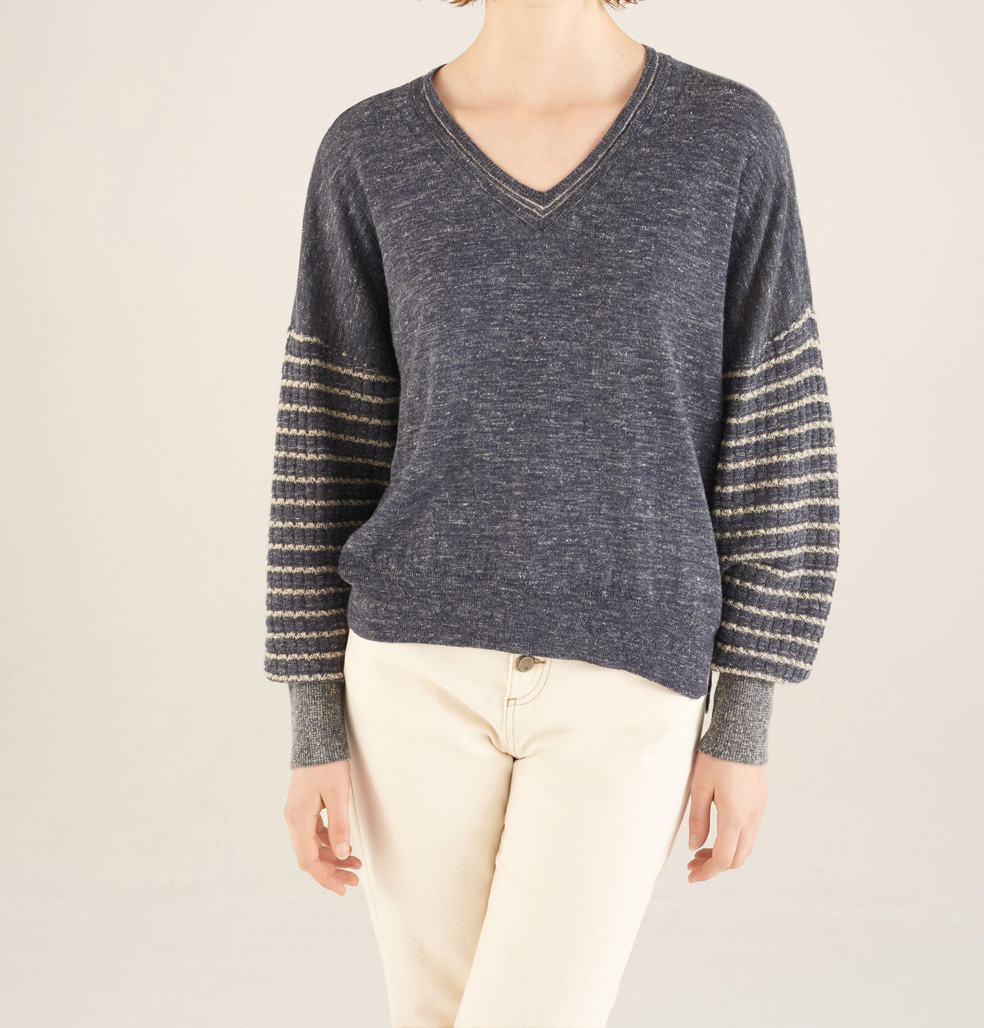 • Caractéristiques clés : - Pull loose légèrement asymétrique avec encolure en V