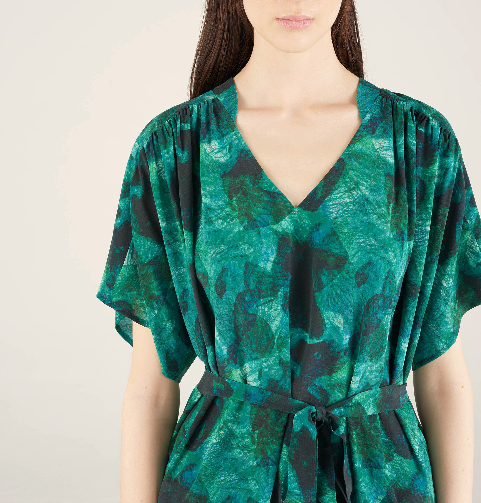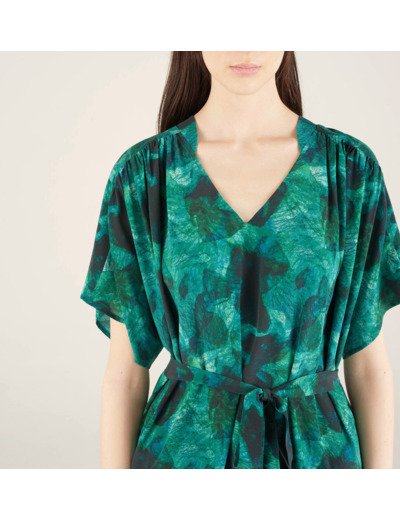 - Ceinturée à la taille (choix possible de ceinture imprimée ou contrastée