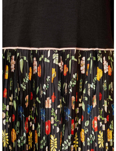 - Bas de la robe plissé et souligné par une fine bande en coloris poudre