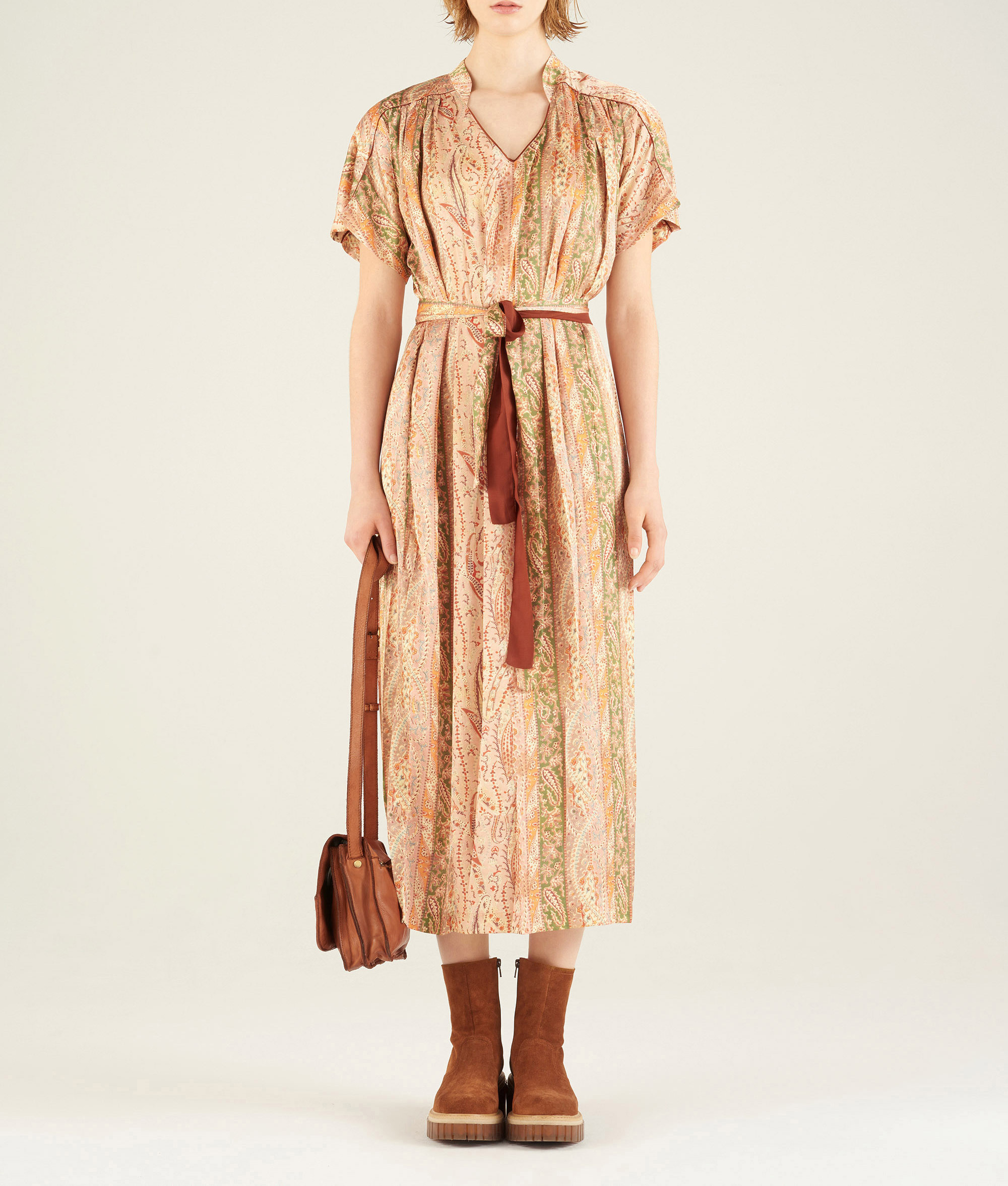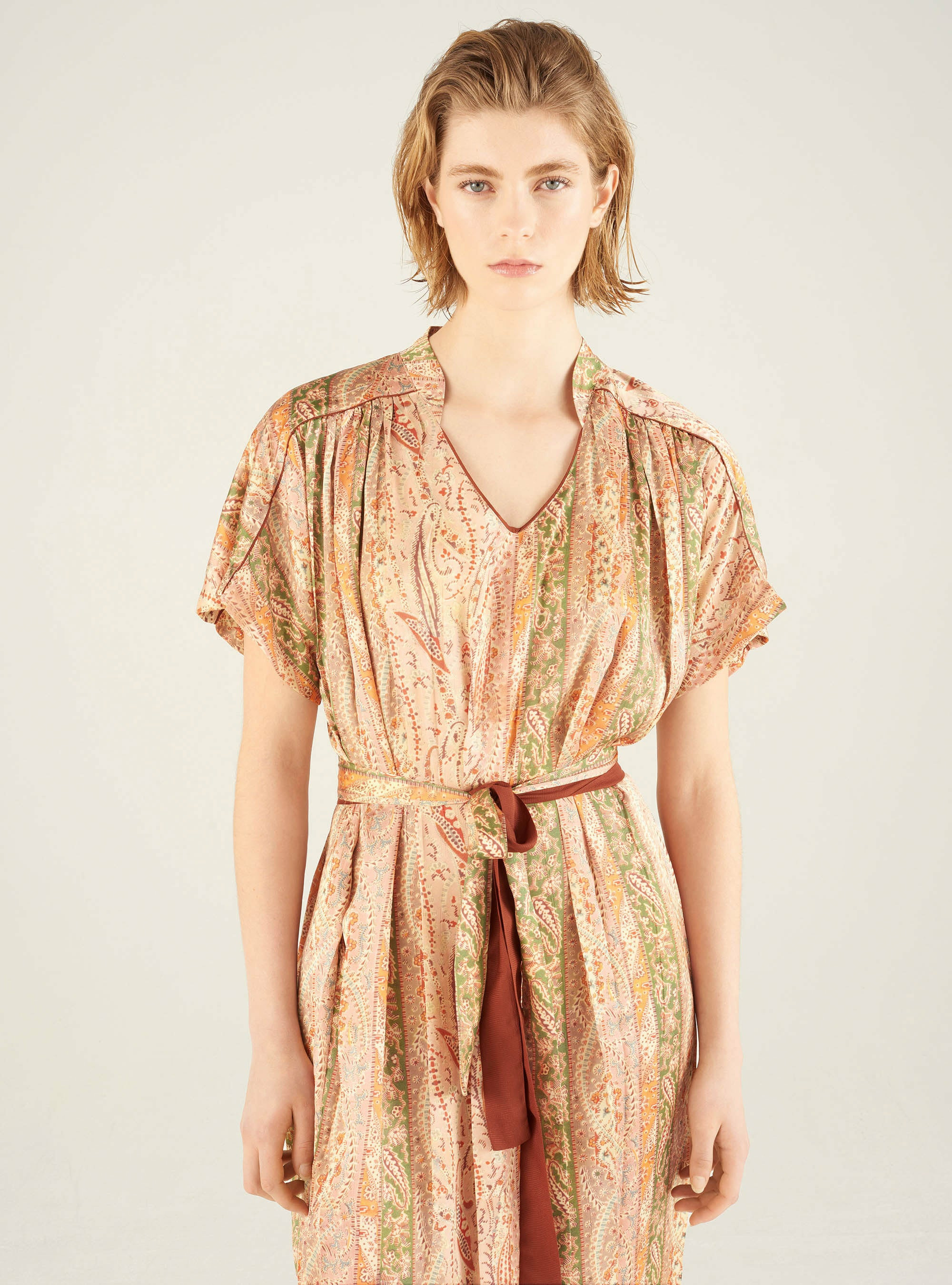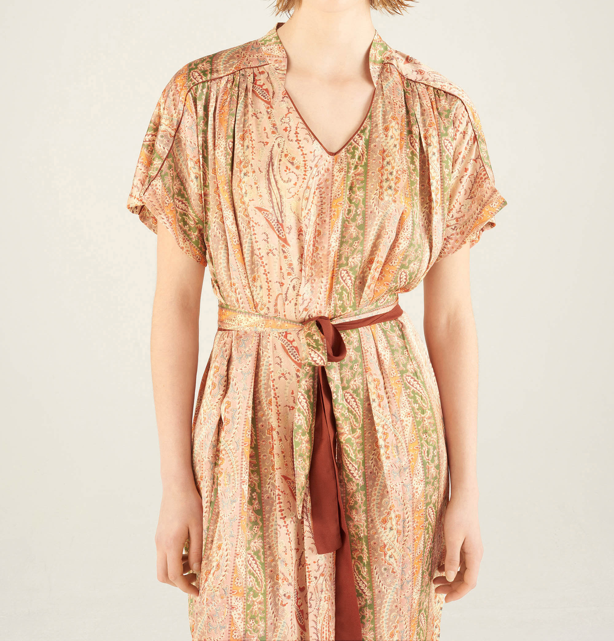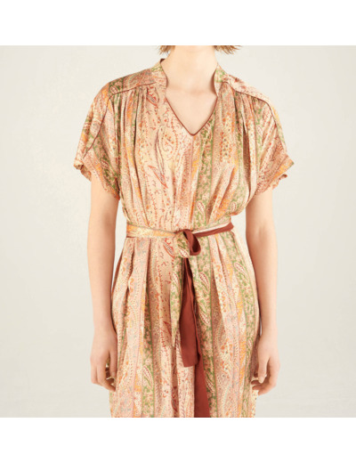 - Ceinturée à la taille (choix possible de ceinture imprimée ou contrastée)