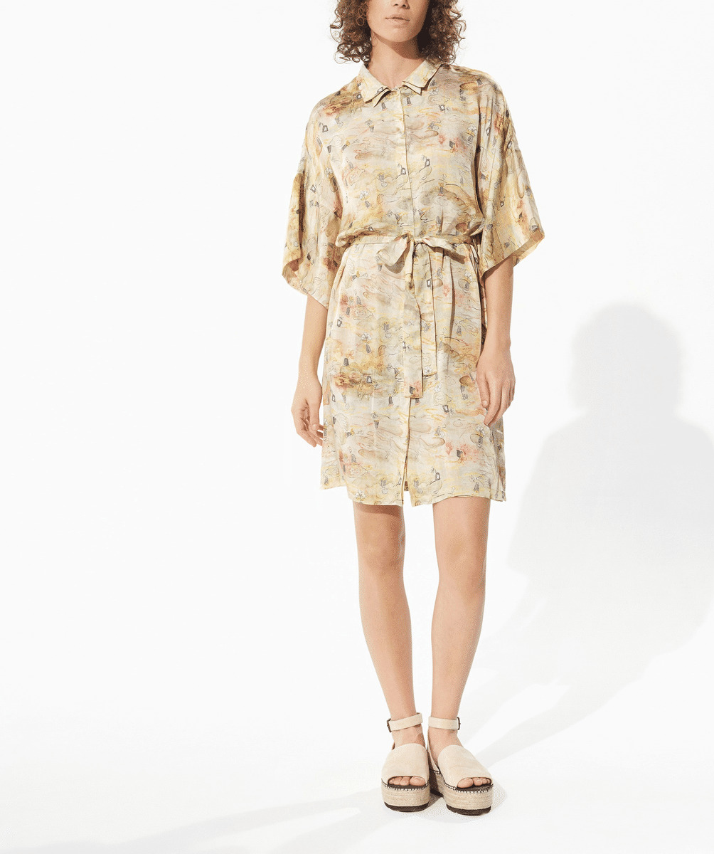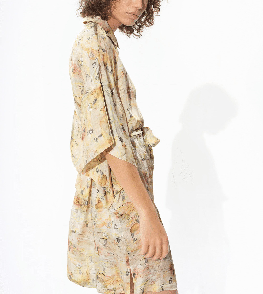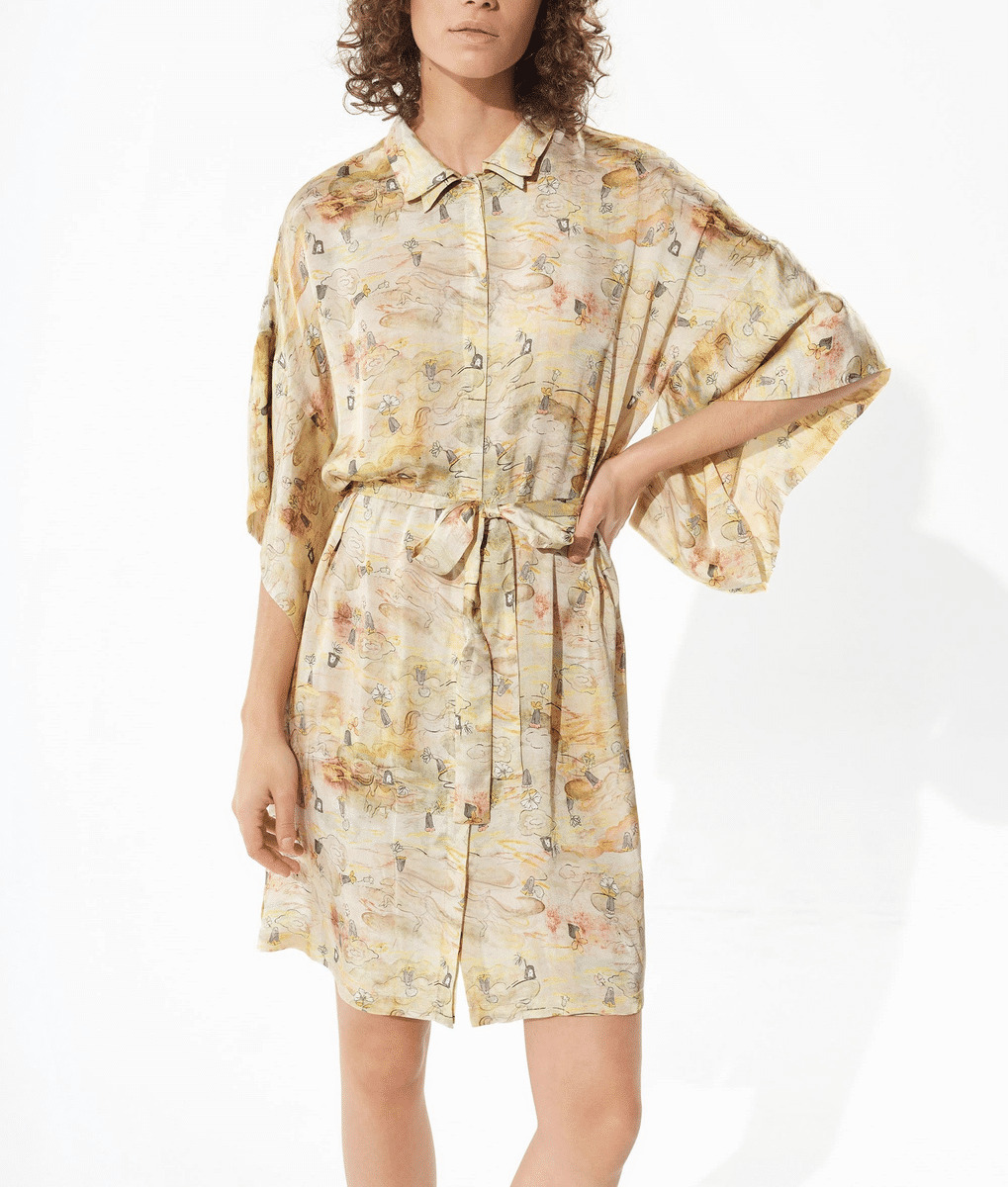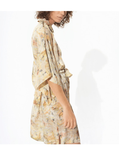 • Caractéristiques clés : - Longue robe fluide esprit kimono