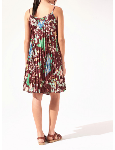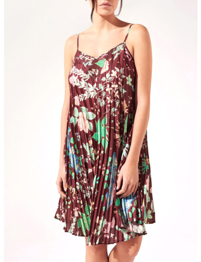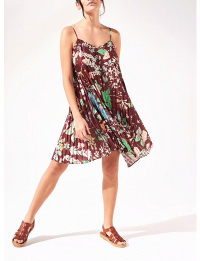 • Caractéristiques clés : La liberté est dansante dans cette robe au motif 'L'éveil' dessiné par nos stylistes et plissée* par nos artisans près de Lyon- Robe fines bretelles réglables- Encolure V devant et dos colleté- Empiècement en voile cloqué devant et dos finition zig zag- Volume près du corps en poitrine et évasé dans le bas(volume ajusté)