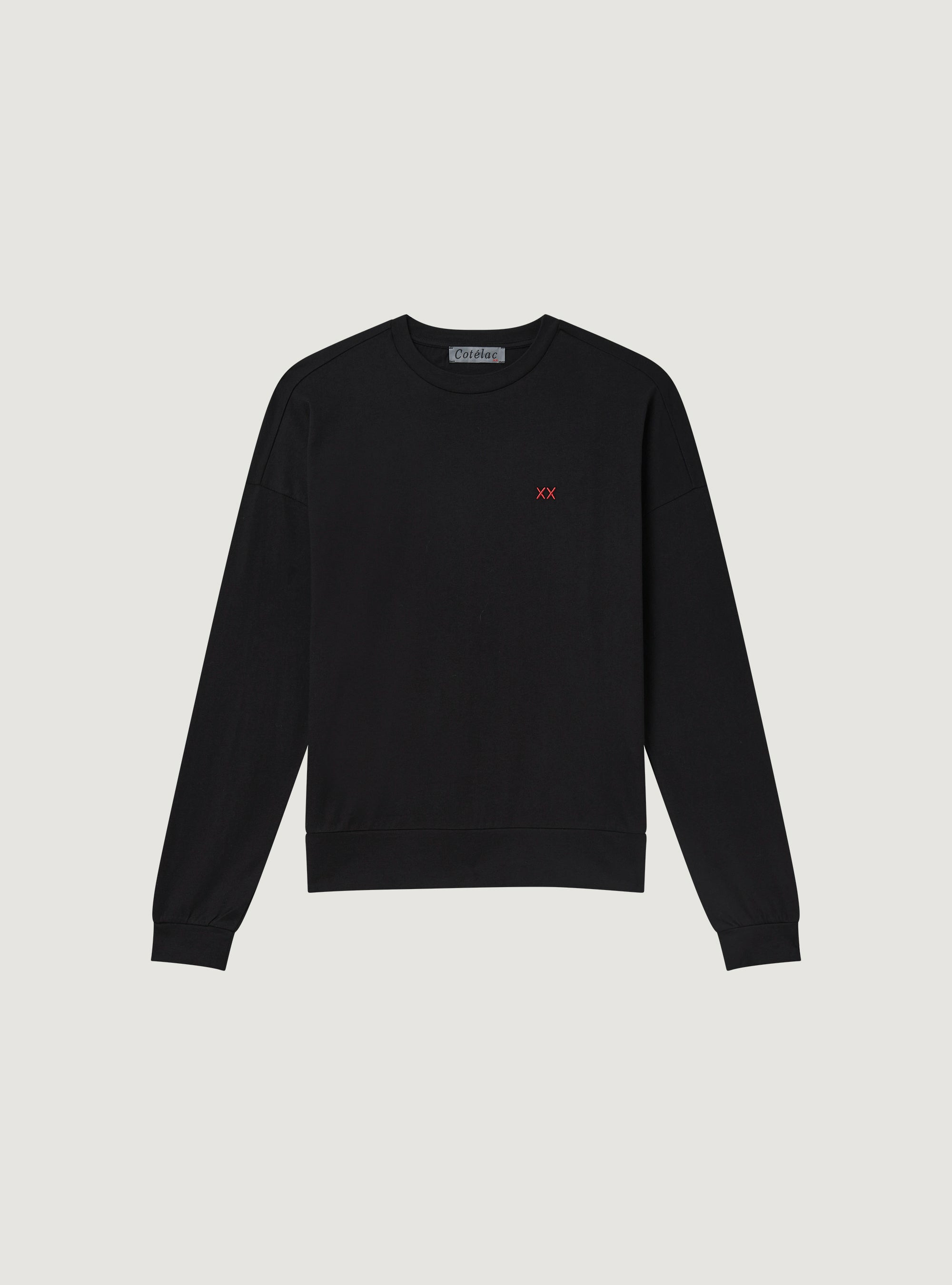 • Caractéristiques clés : T-shirt à manches longues esprit sweater avec sa coupe droite et sa matière jersey de coton.