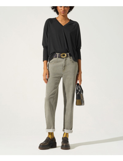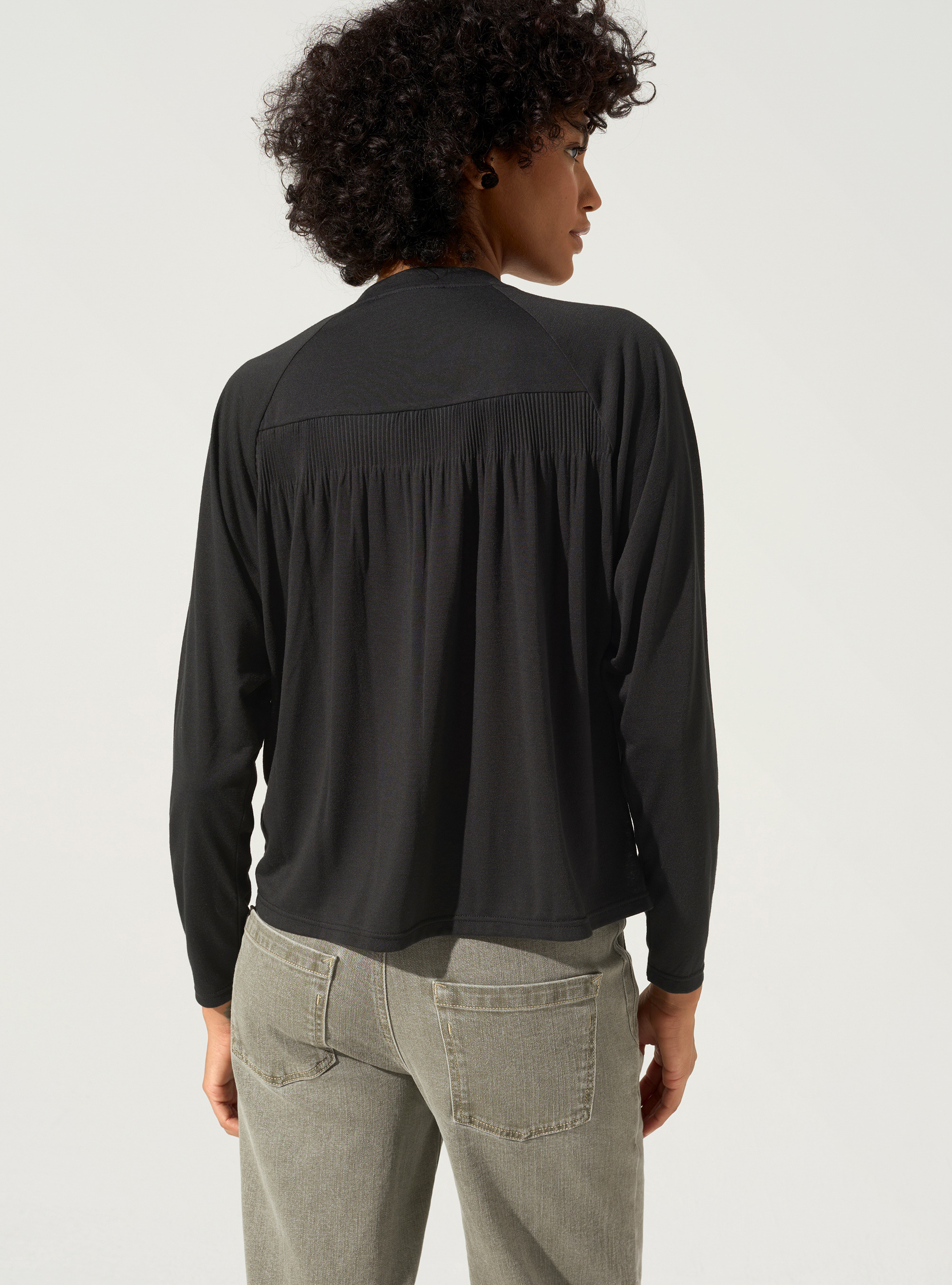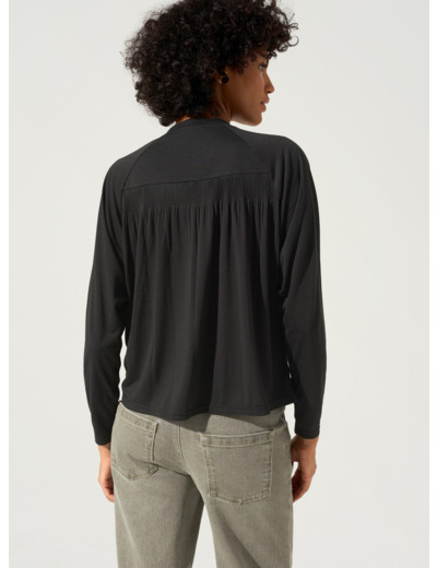 • Caractéristiques clés : T-shirt à manches longues et encolure en V. Matière douce et confortable : la viscose lui donne toute sa fluidité tandis que le polyester nous permet de procéder au plissage du cristal. Découpe dos soulignée par un plissé cristal effectué pièce par pièce dans notre atelier d'Ambérieu en Bugey.