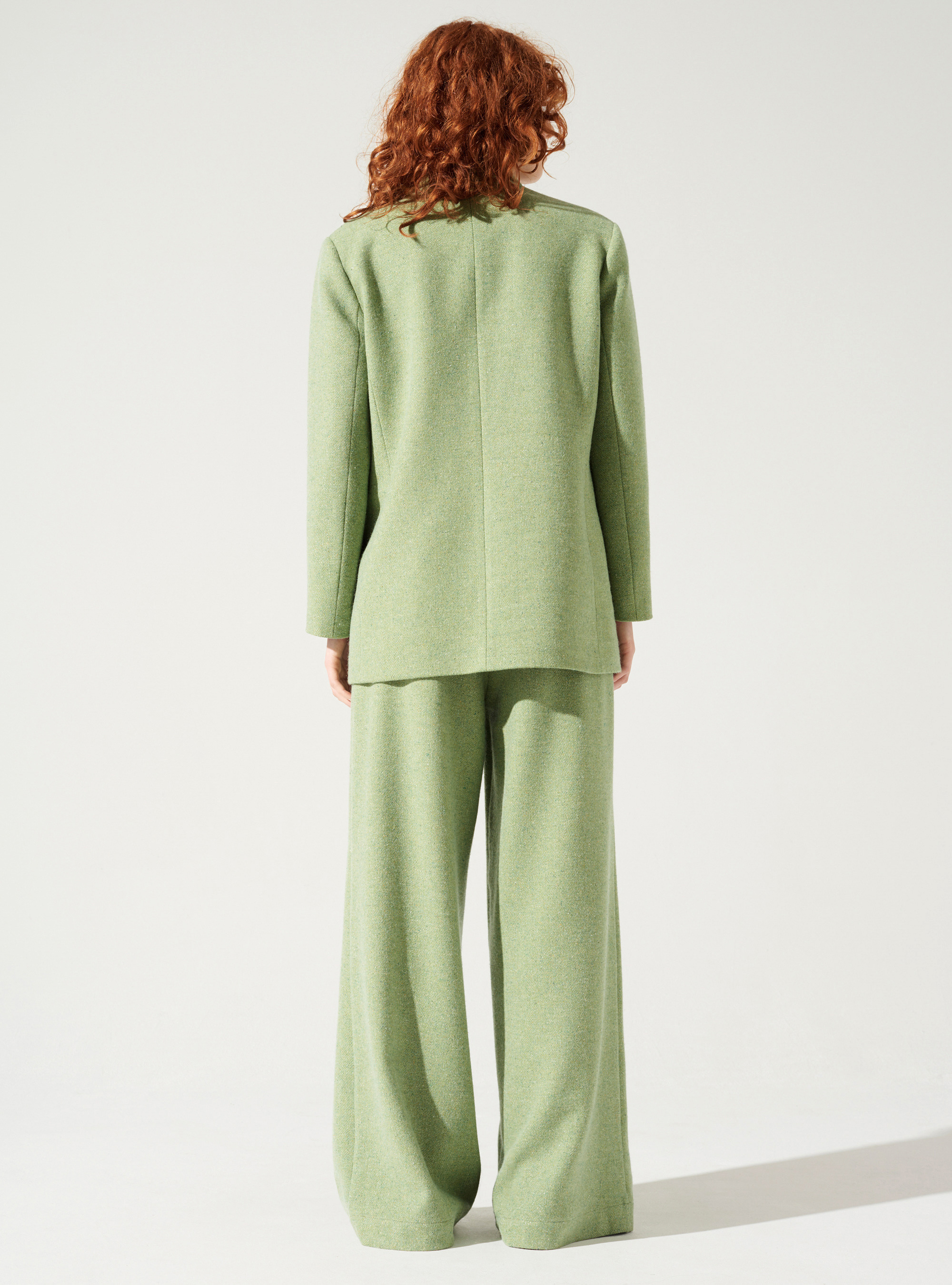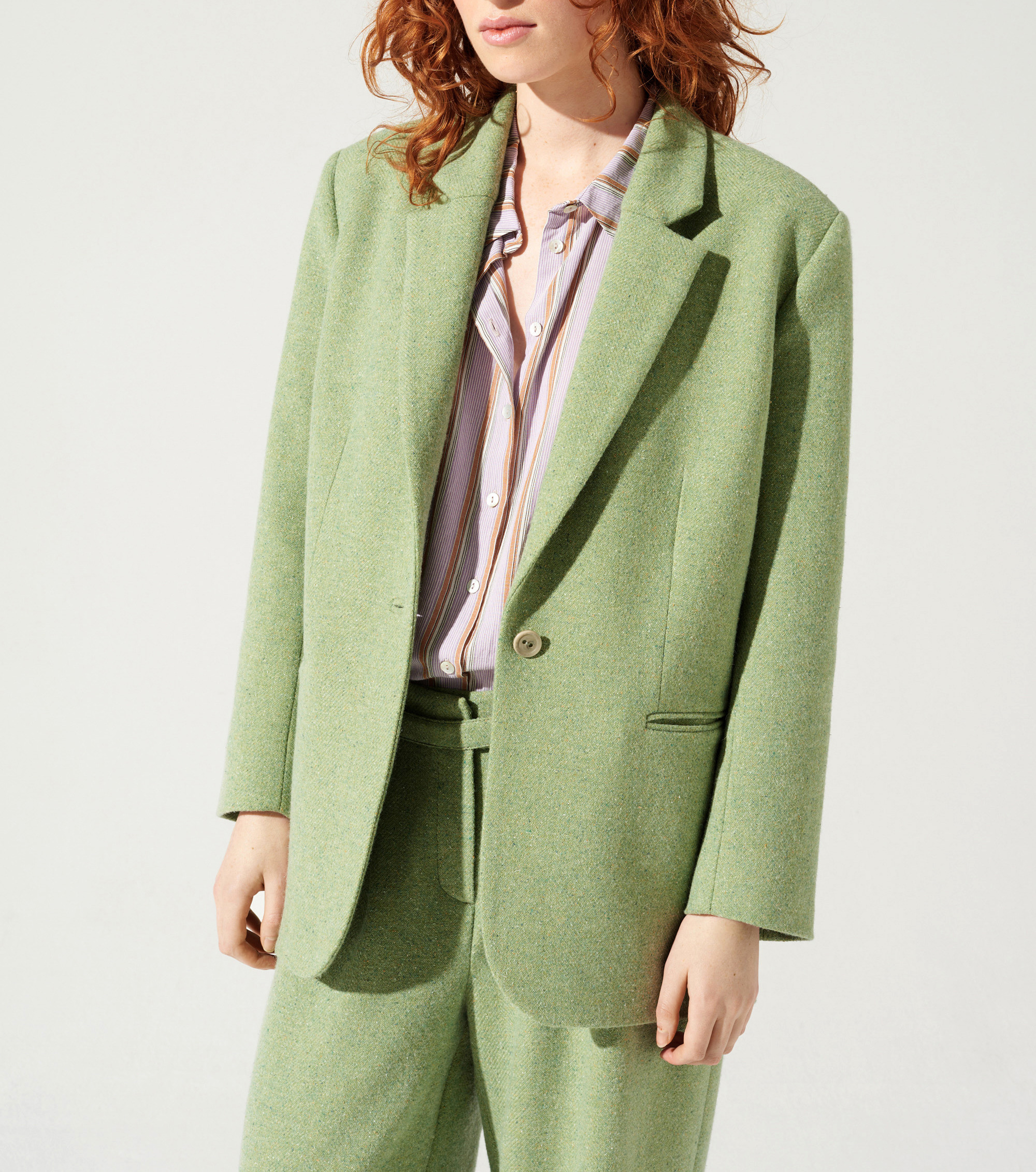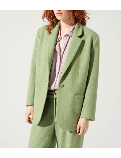 • Caractéristiques clés : Veste blazer coupe droite qui structure la silhouette à l'aide de son ouverture au bouton corozo ton sur ton. Ce modèle épuré revisite les codes classiques et contemporains avec sa doublure imprimée de la saison et son coloris singulier. À porter dépareillée ou en total look avec le pantalon large assorti.