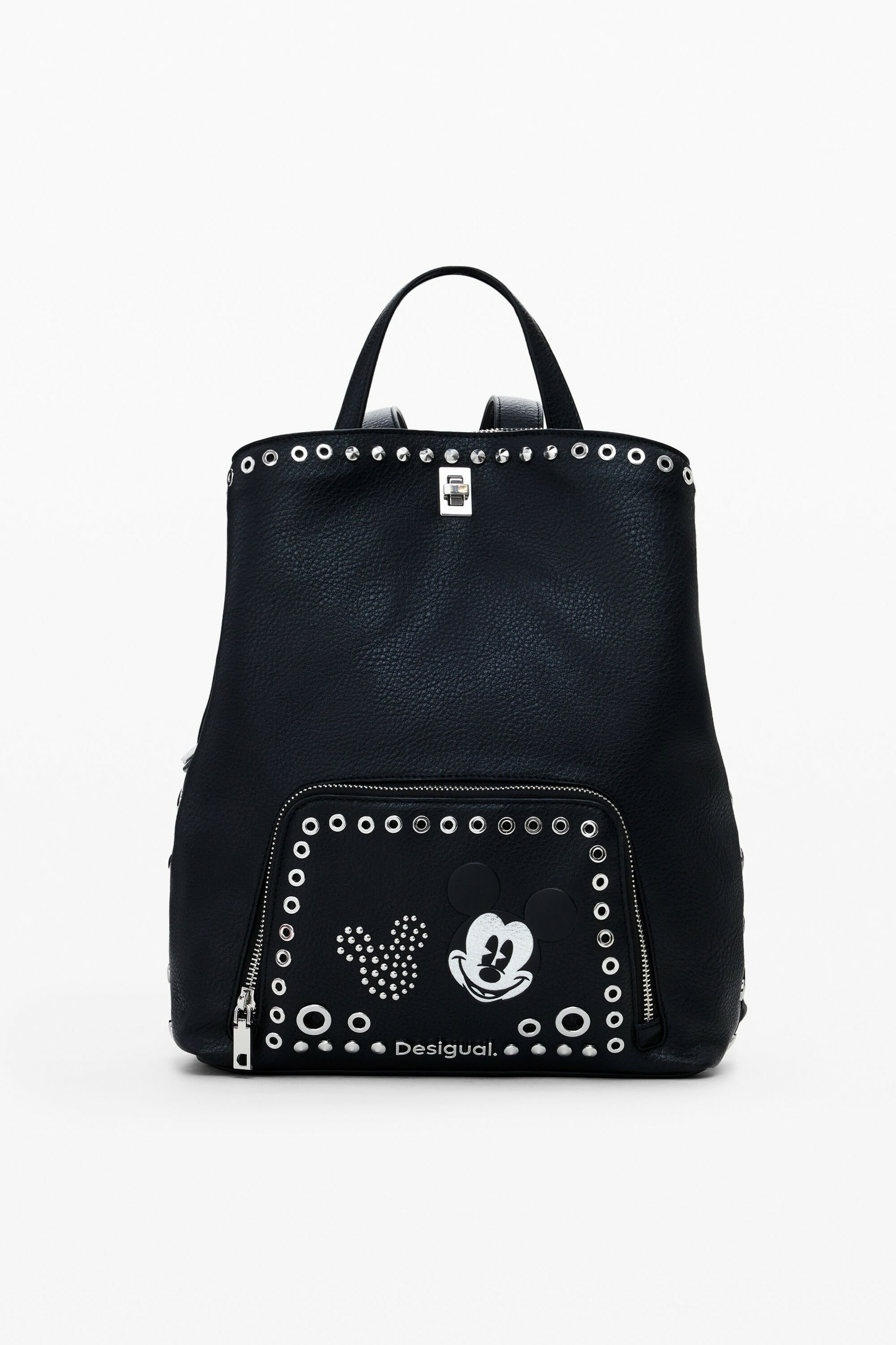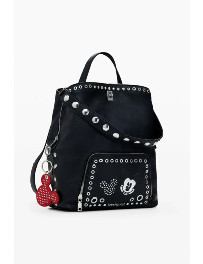 Affichez un style unique avec ce sac à dos moyen en effet cuir, sublimé par les broderies iconiques de Mickey Mouse™ et des détails en clous qui apportent une touche rock et moderne. Son porte-clés amovible ajoute une note ludique et personnalisable à votre look.