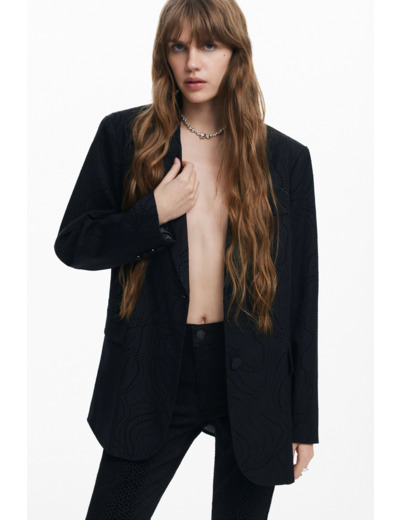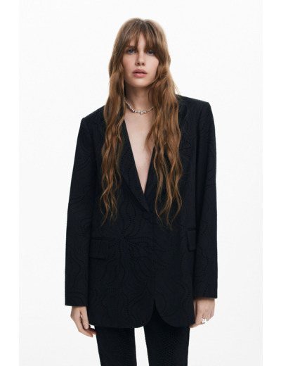Blazer à coupe droite signé Desigual, doté de poches latérales et d’une fermeture à bouton unique. Entretien : ne pas laver pour préserver la qualité et la structure du tissu.