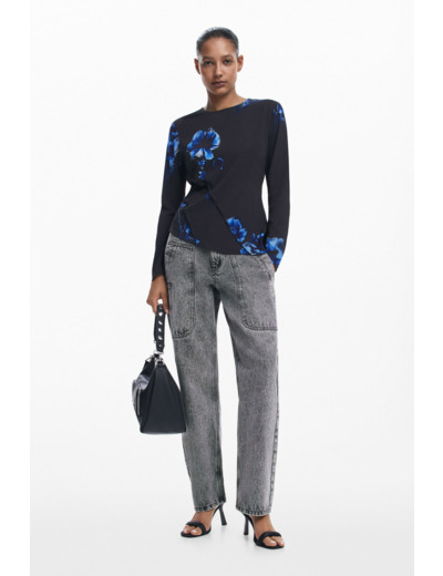 Laissez-vous séduire par cette blouse à manches longues qui allie élégance florale et modernité asymétrique. Un must-have pour dynamiser votre garde-robe avec une touche de fraîcheur et de caractère.