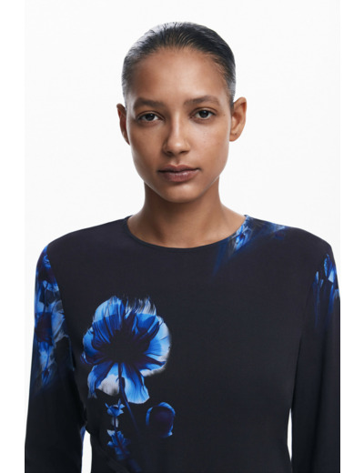 Conçue par Desigual, cette blouse se distingue par son imprimé floral vibrant et sa coupe asymétrique qui apporte du mouvement et de la légèreté à votre silhouette. Sa matière fluide épouse délicatement le corps, offrant un confort optimal tout au long de la journée. Parfaite pour une tenue casual chic ou un look plus sophistiqué, elle s’adapte à toutes vos envies.