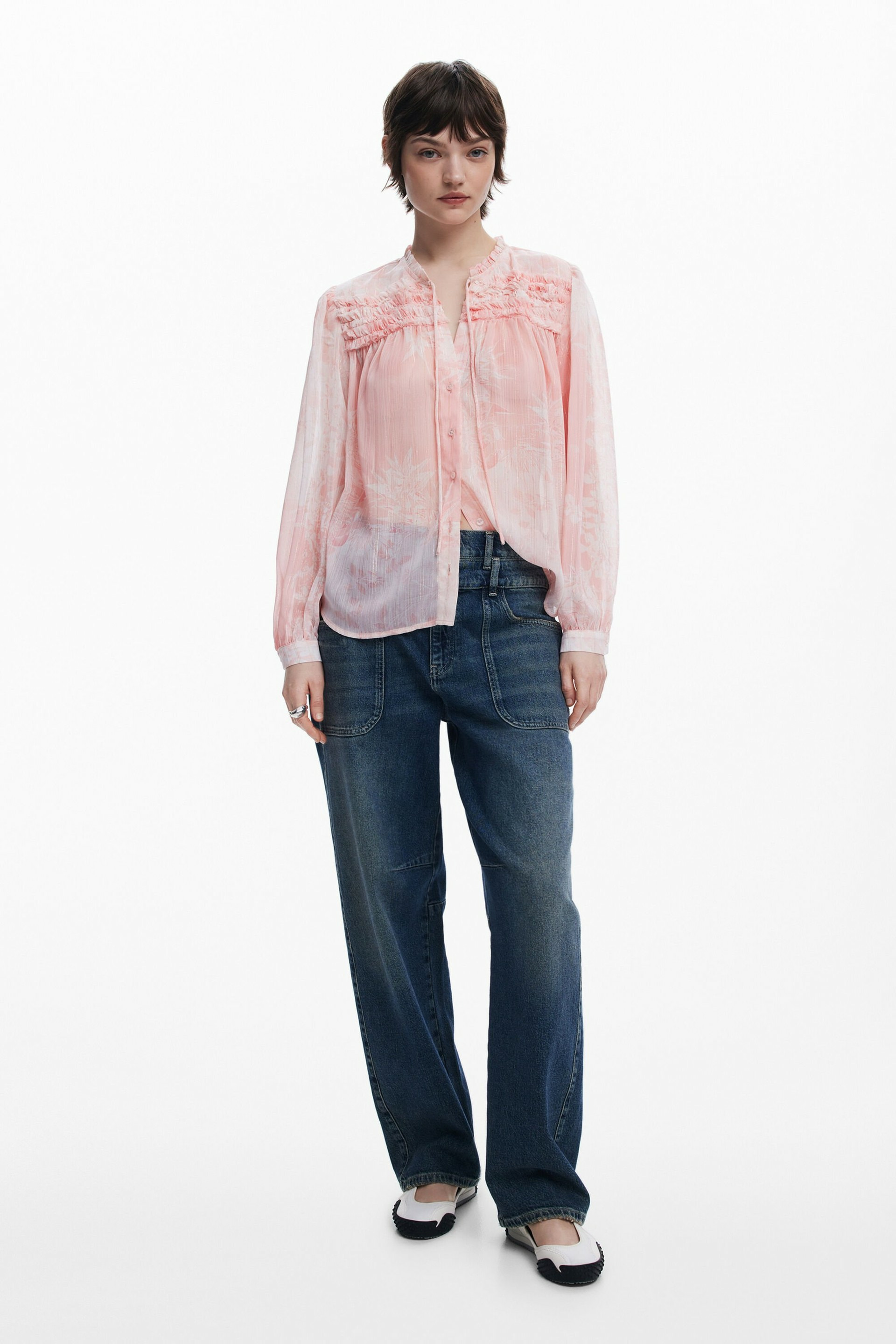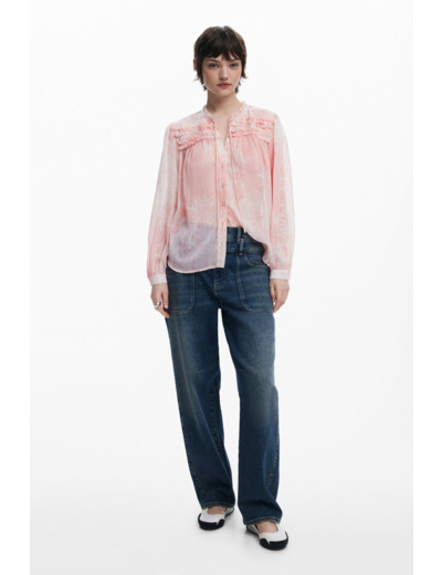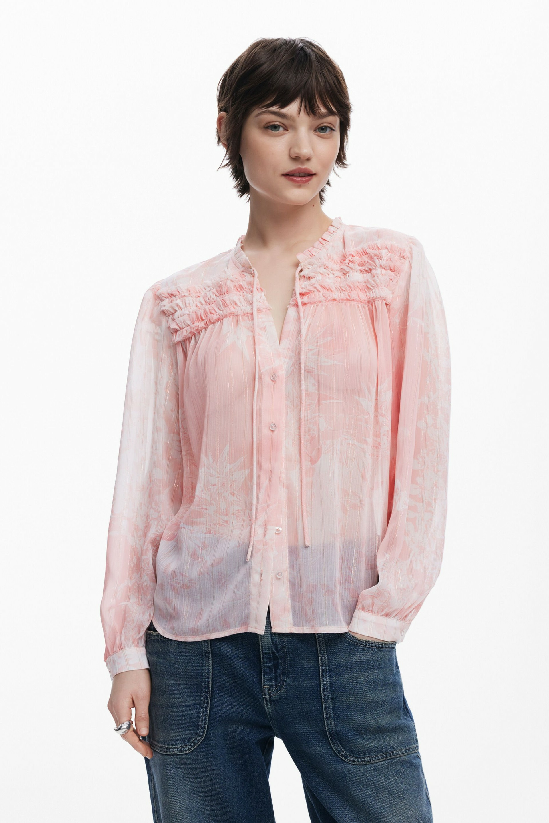Affirmez votre style avec cette blouse à manches longues signée Desigual, où élégance et originalité se rencontrent. Les cordons à nouer au cou et les jabots délicats apportent une touche sophistiquée à votre tenue.