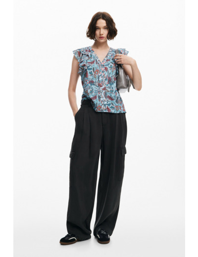 Conçue pour allier confort et style, cette blouse Desigual se distingue par ses détails soignés qui dynamisent votre silhouette. Son imprimé floral apporte une touche de nature et de douceur, tandis que les volants ajoutent du mouvement et une allure sophistiquée, idéale pour vos journées ensoleillées ou vos sorties décontractées.