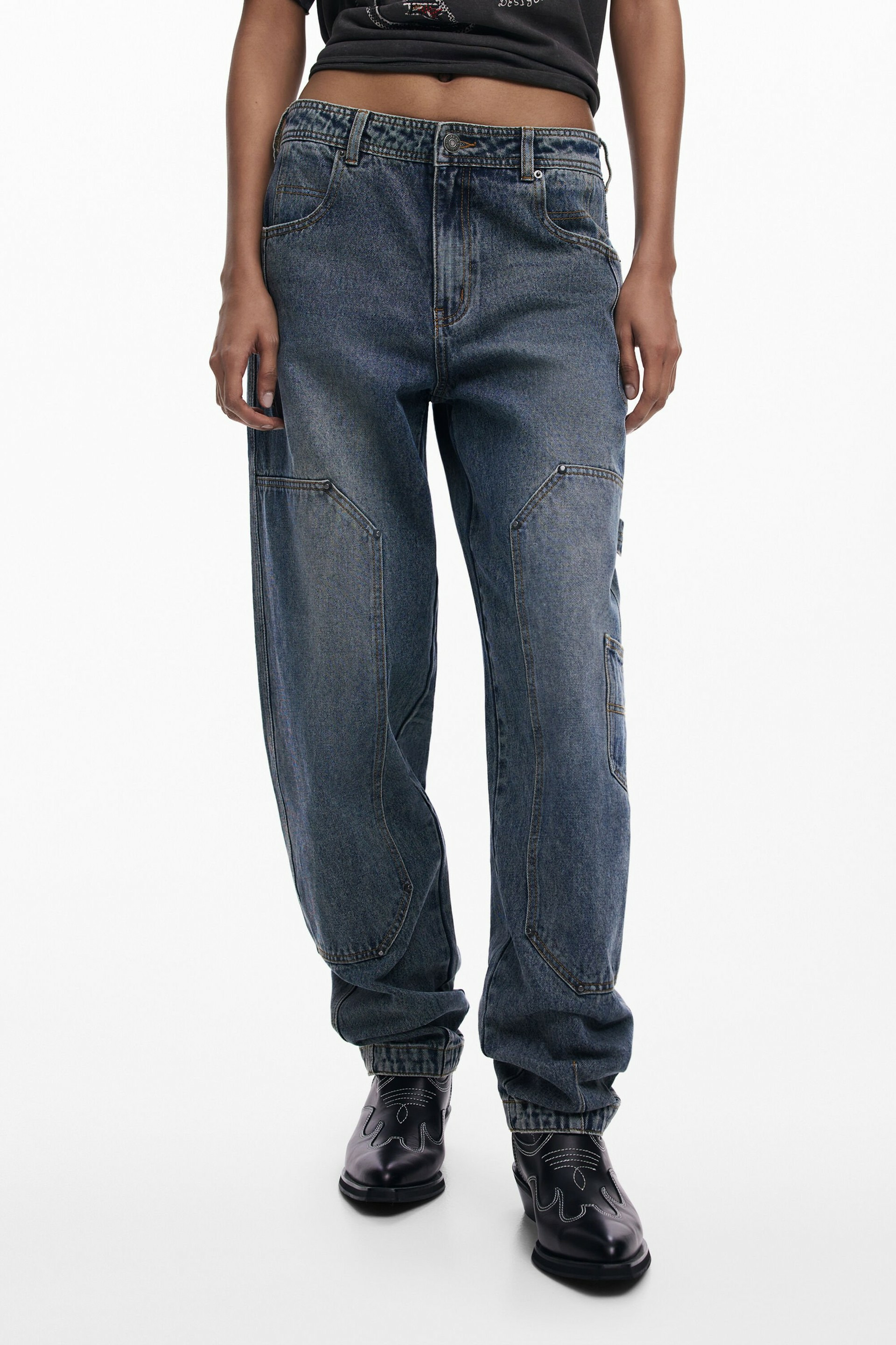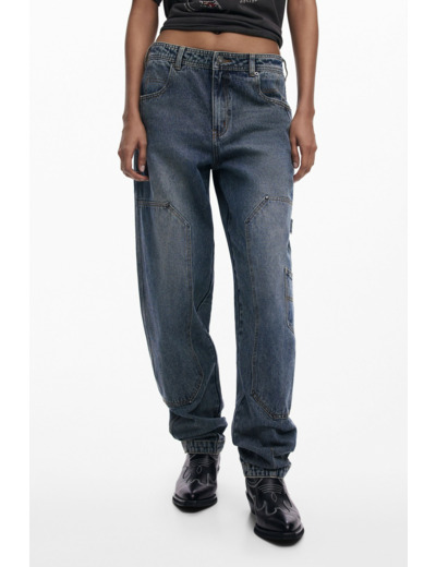 Adoptez un style décontracté et tendance avec ce jean coupe boyfriend signé Desigual, sublimé par un effet usé authentique. Ses poches pratiques et ses coutures décoratives apportent une touche d’originalité à votre denim quotidien.