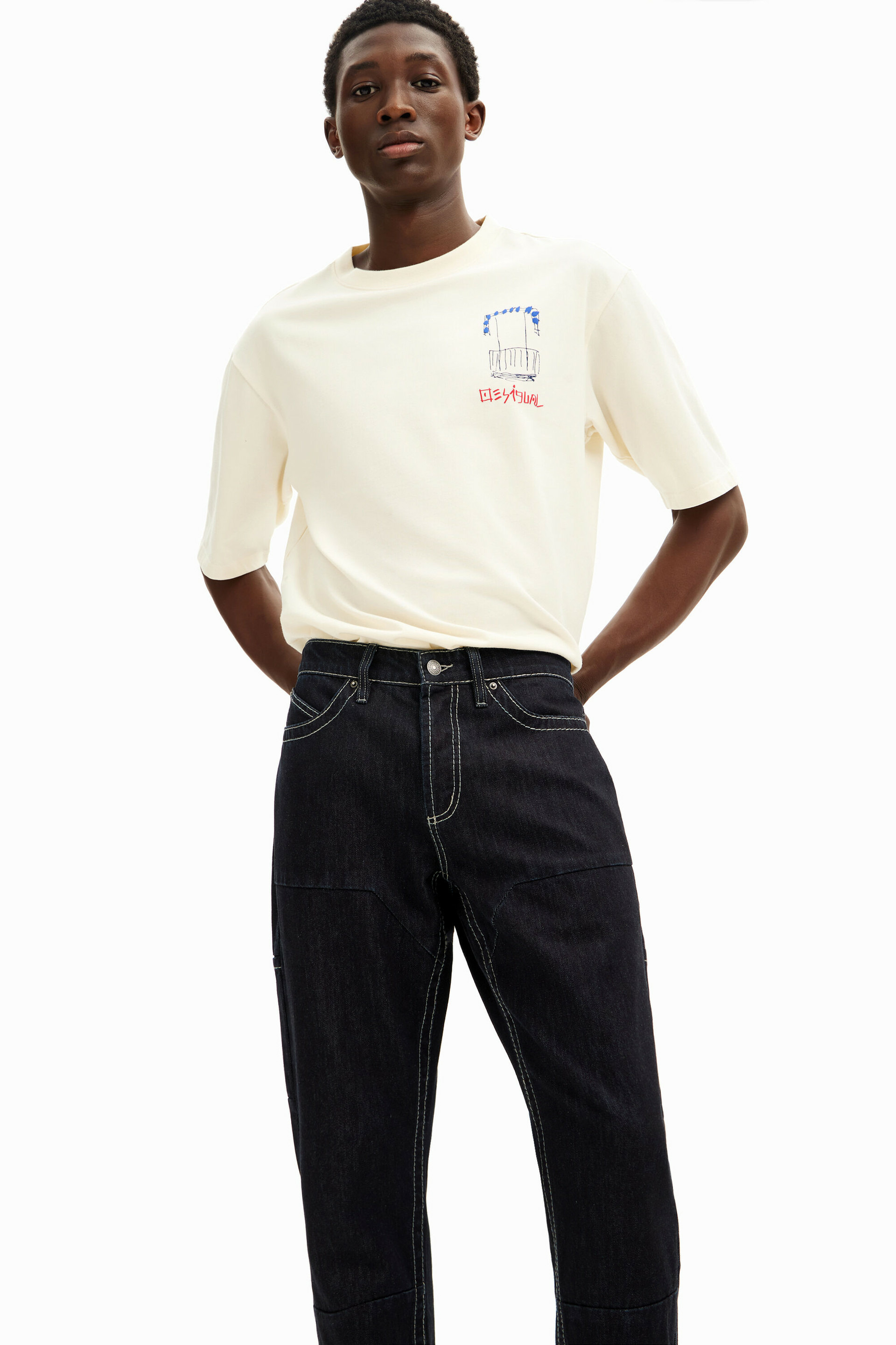 Réponse : Ce pantalon est proposé dans la teinte denim classique, fidèle à l’esprit Desigual.