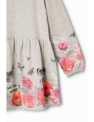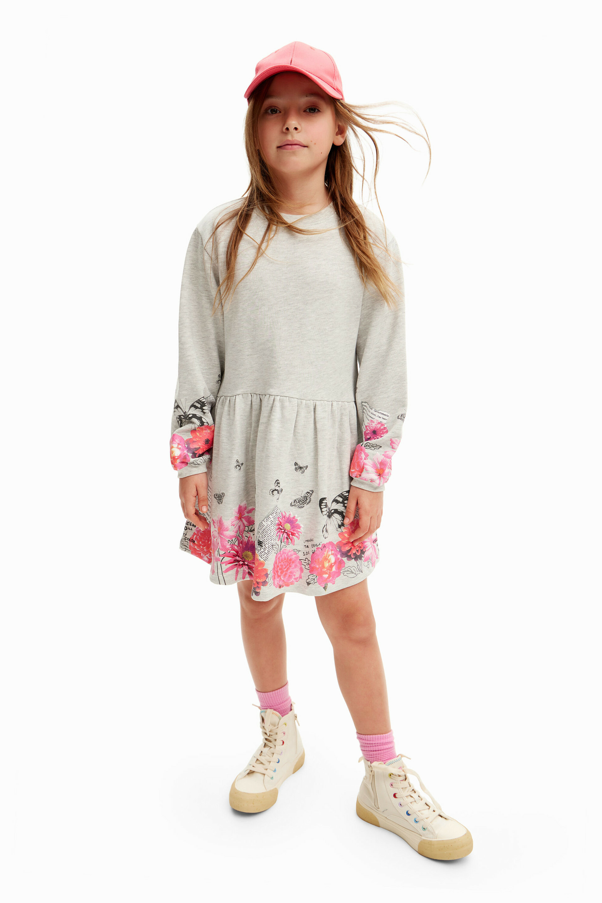 Affirmez votre style avec cette robe à manches longues en tissu sweat, où confort et élégance se rencontrent. Les détails délicats de papillons et de fleurs aux poignets et à l’ourlet apportent une touche féminine et unique à votre silhouette.