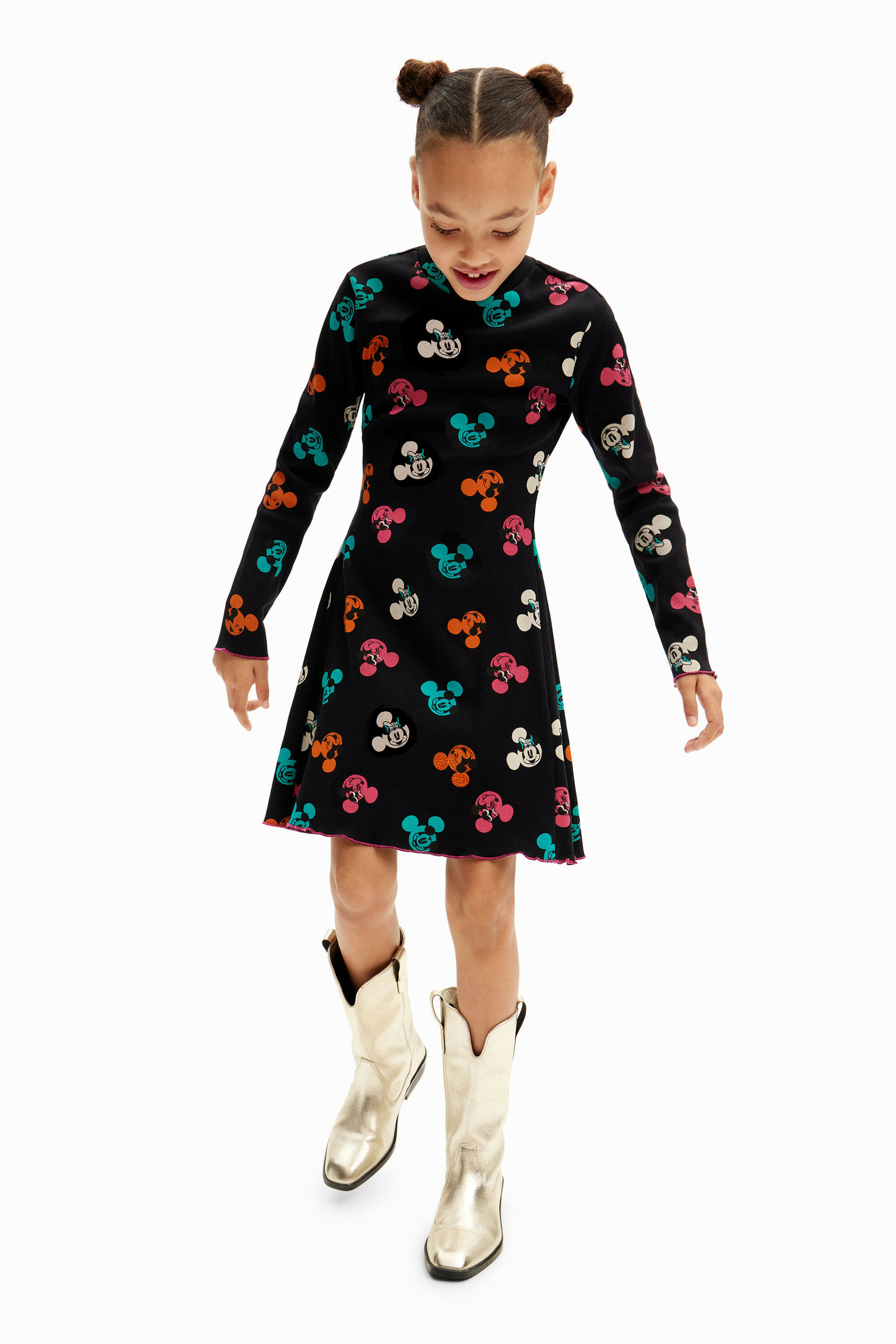 Affichez votre originalité avec cette robe mi-longue à manches longues, ornée d’un col montant et d’un design coloré signé Mickey Mouse. Une pièce unique qui allie audace et élégance pour sublimer votre style au quotidien.