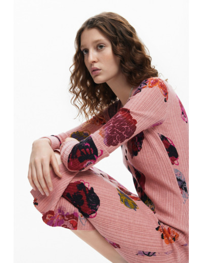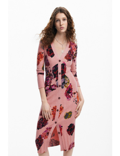 Conçue pour épouser vos formes, cette robe midi à manches longues allie confort et style. La maille douce et extensible assure une tenue impeccable tandis que la fermeture à bouton apporte une touche sophistiquée et pratique. Son imprimé exclusif confère une allure artistique, parfaite pour vos sorties ou journées au bureau.